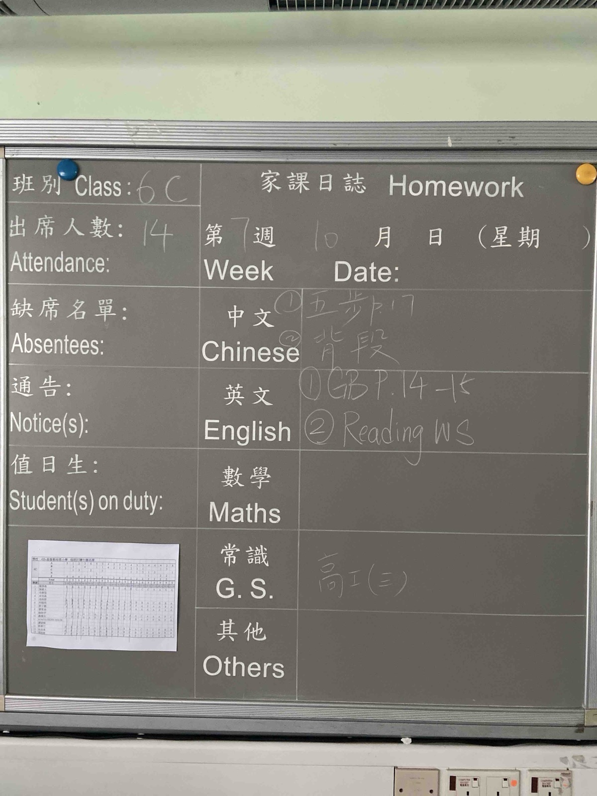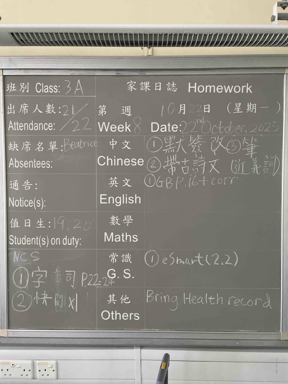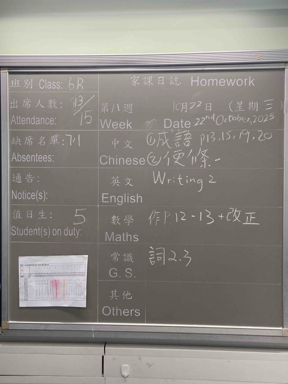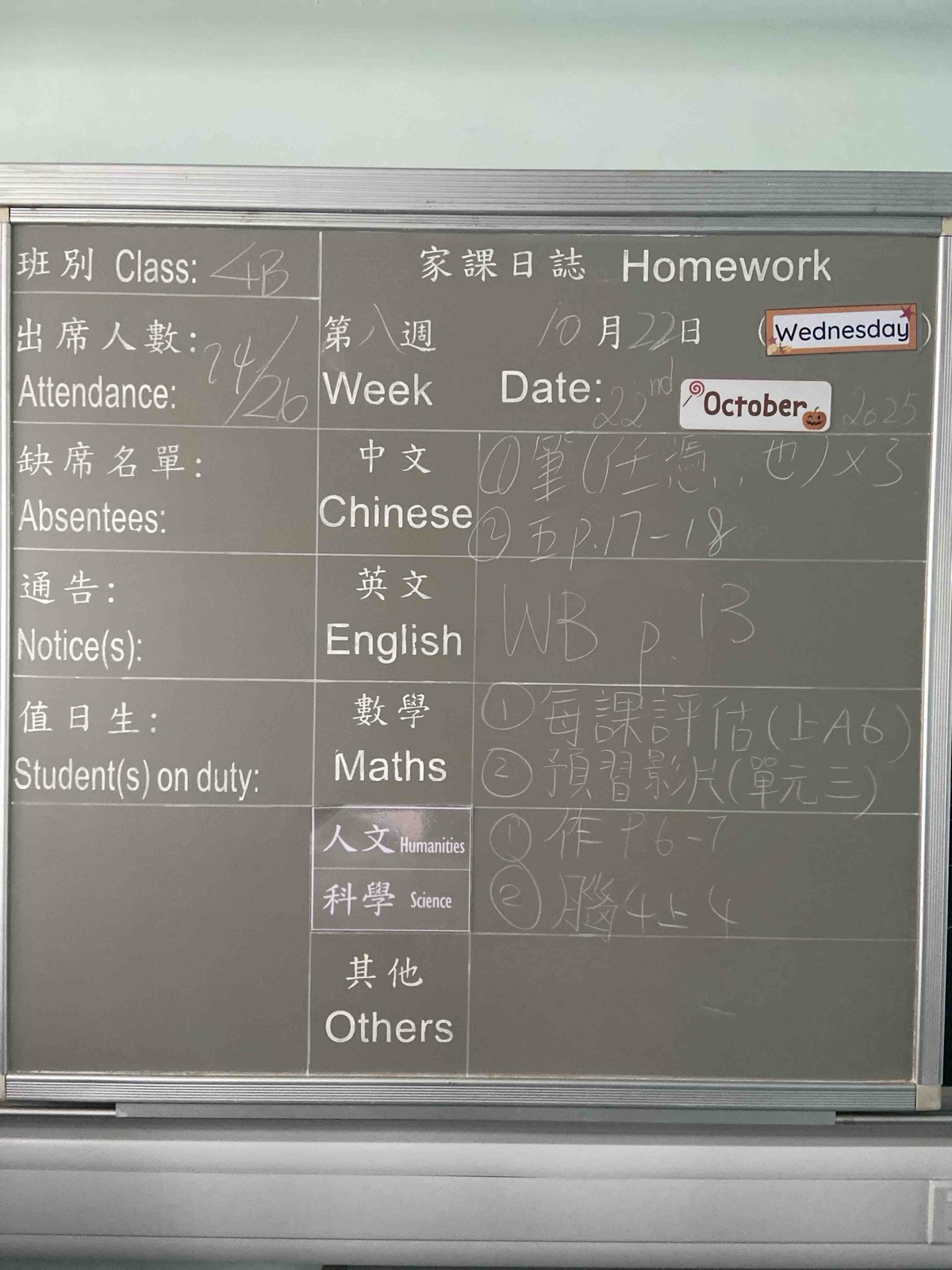 班別家課