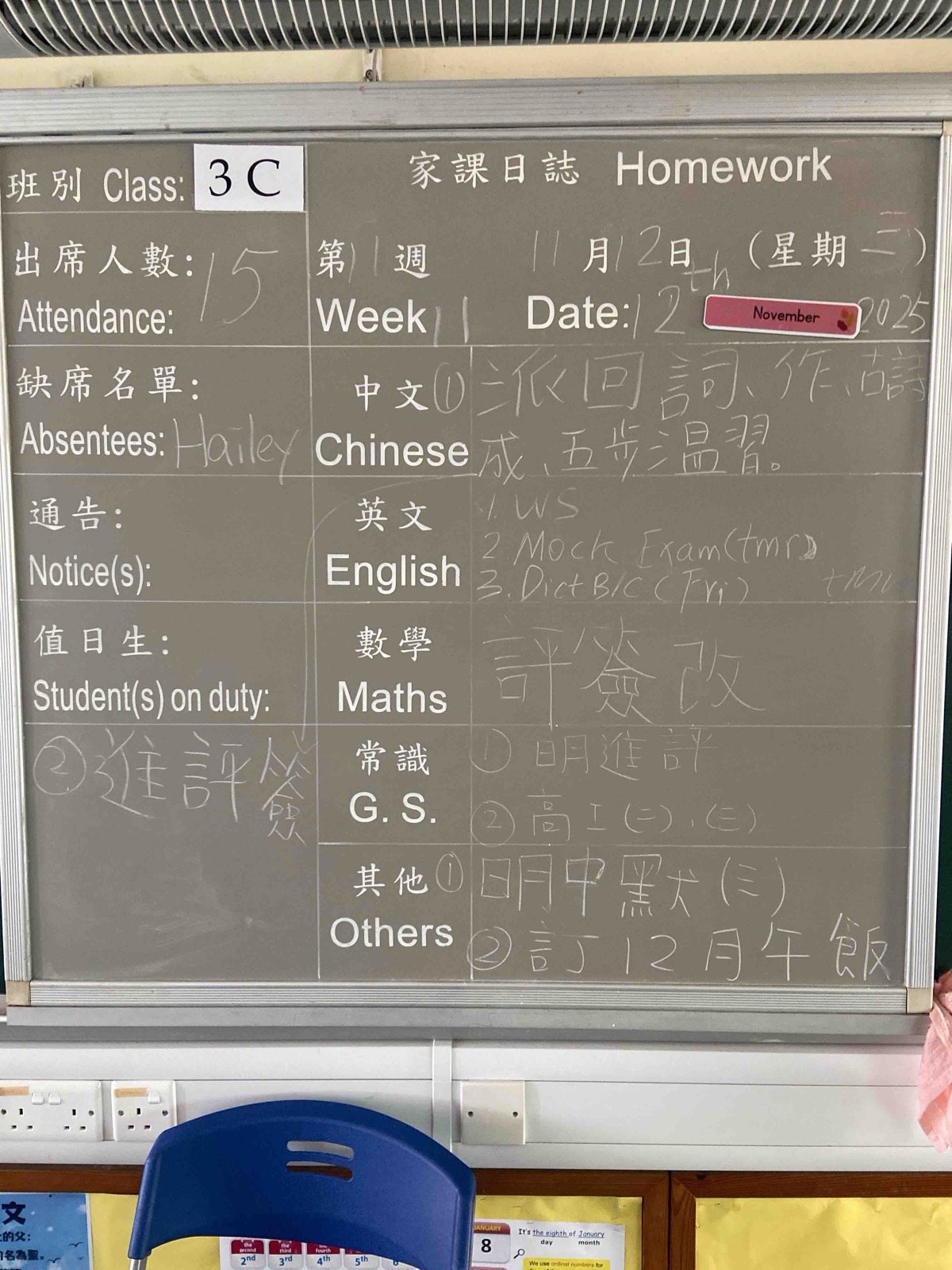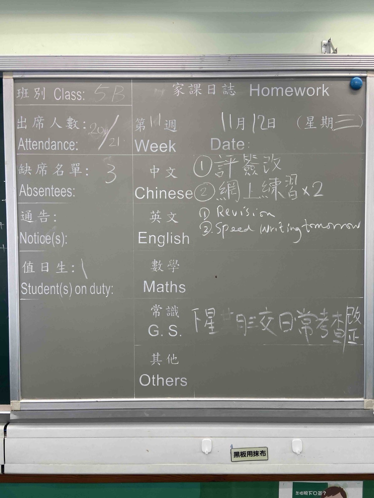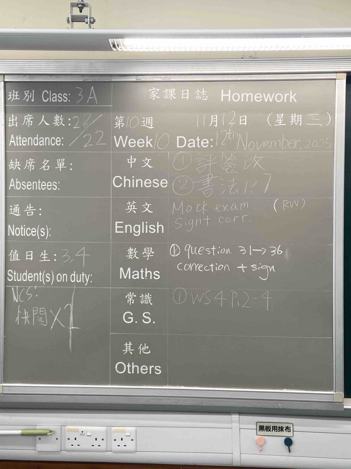 班別家課