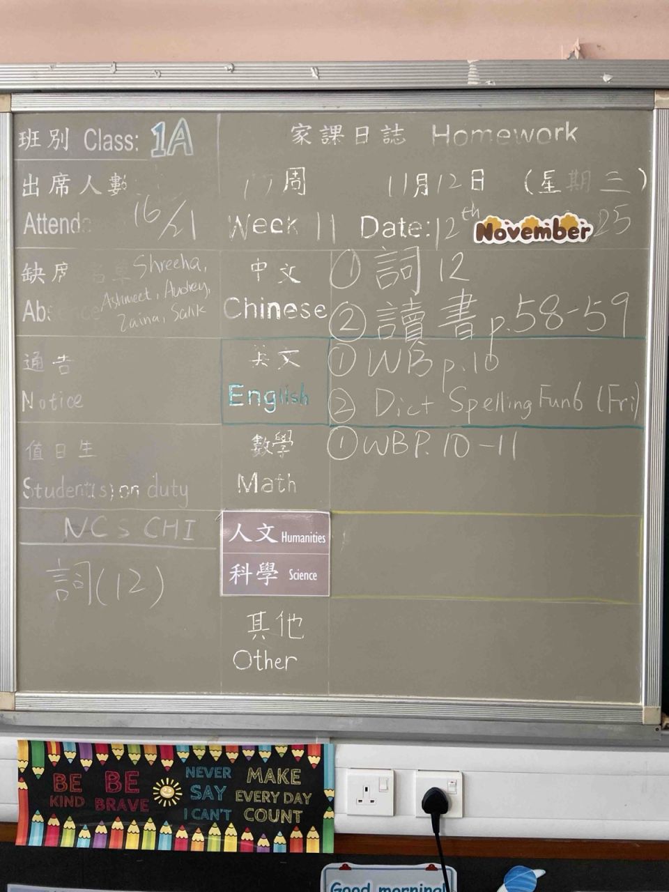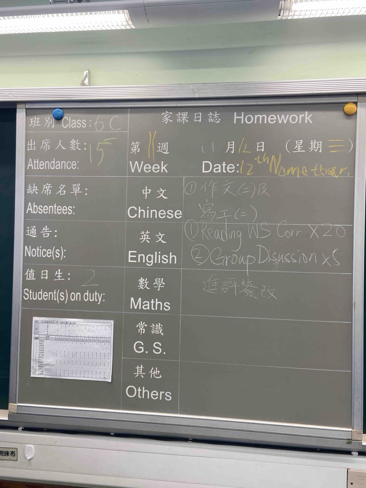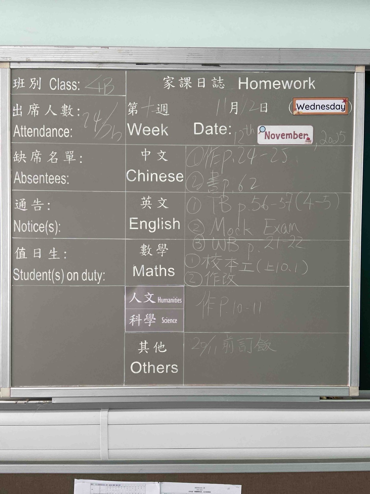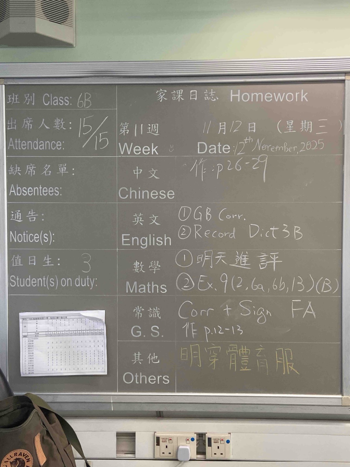 班別家課