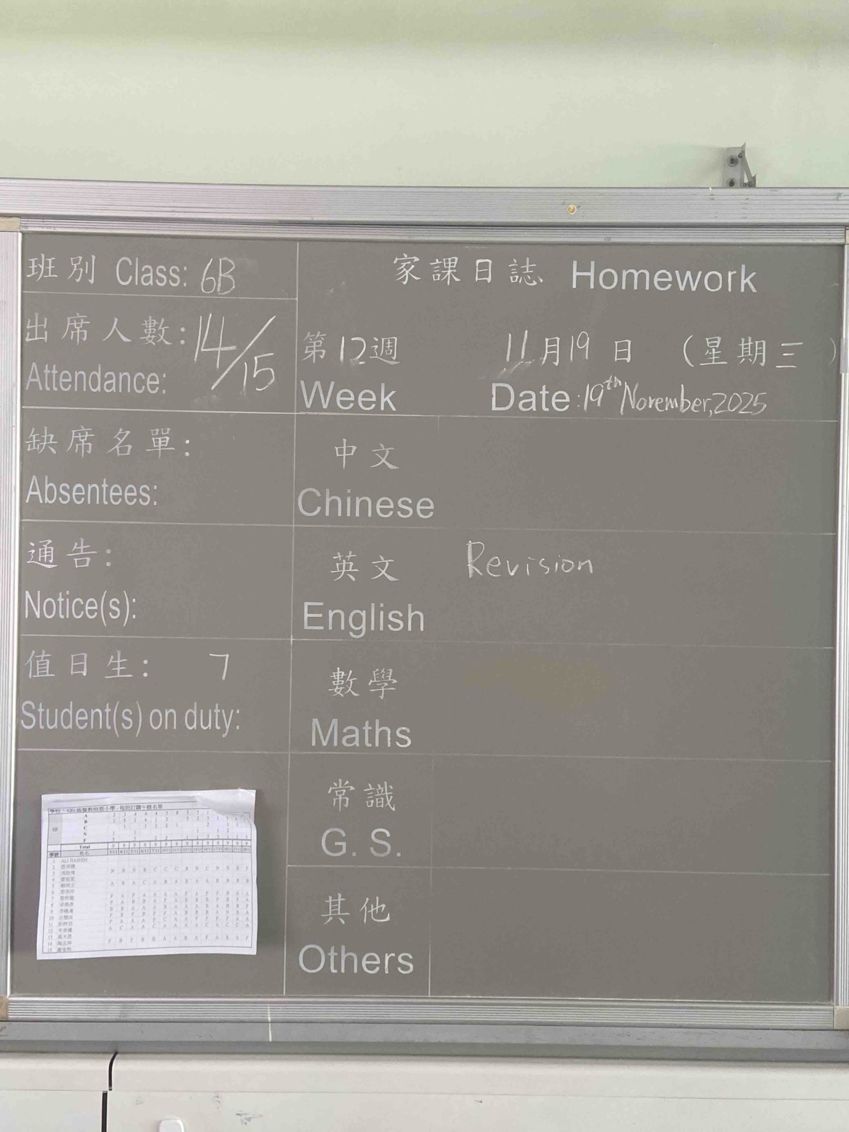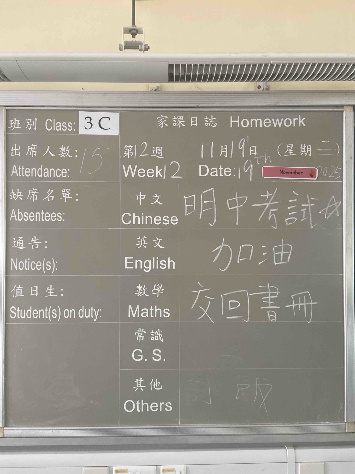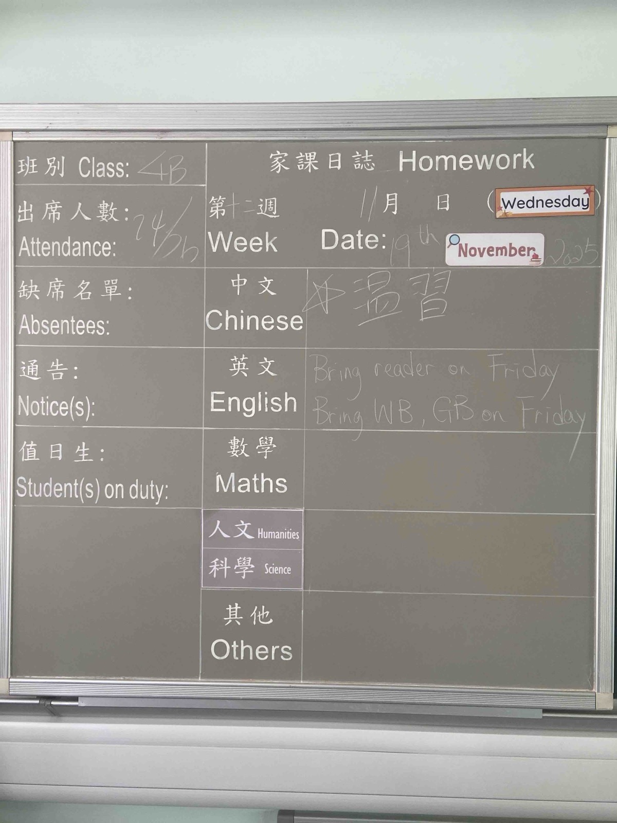 班別家課