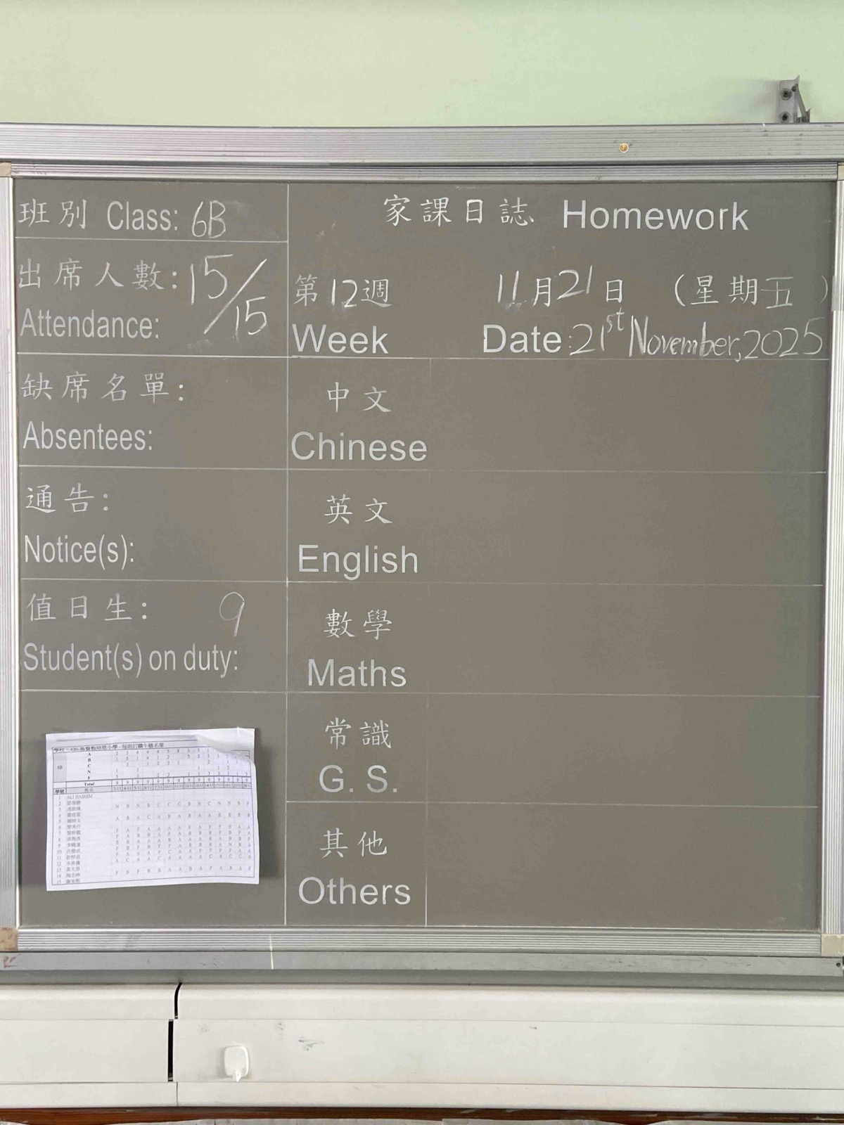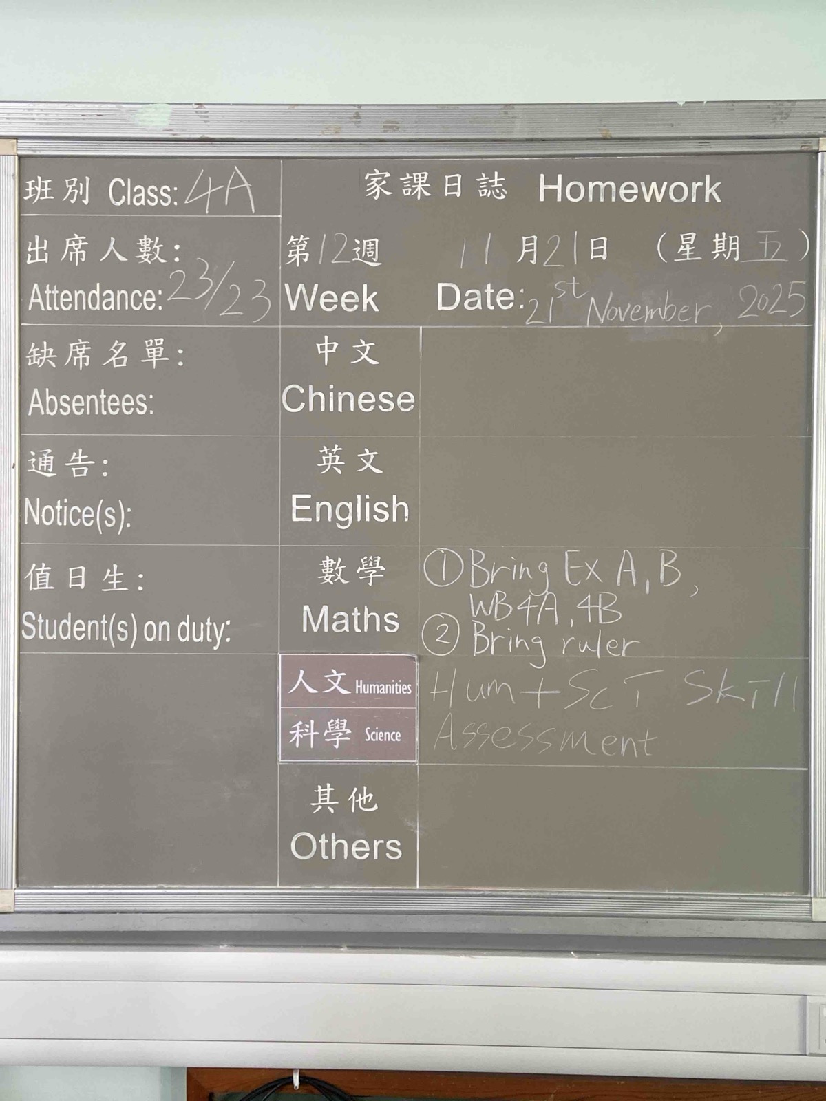 班別家課