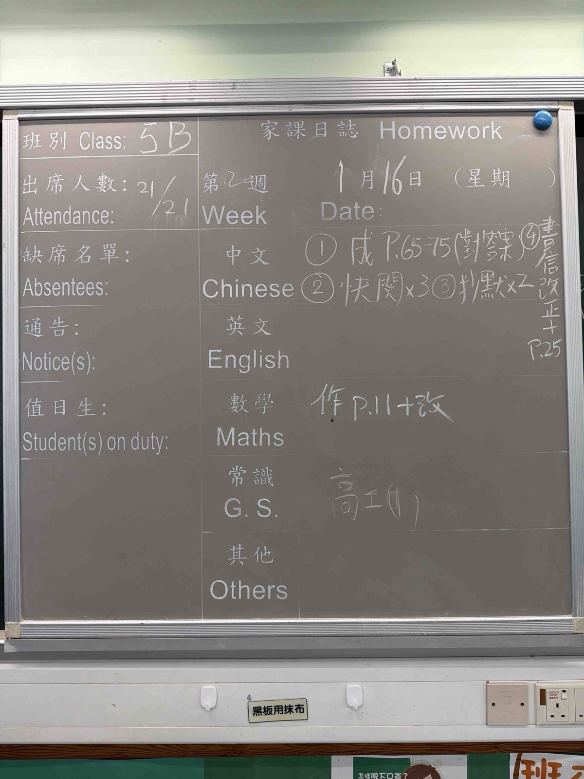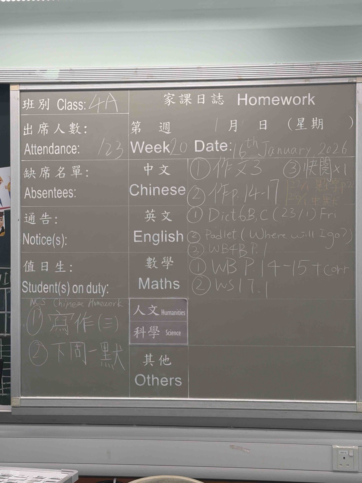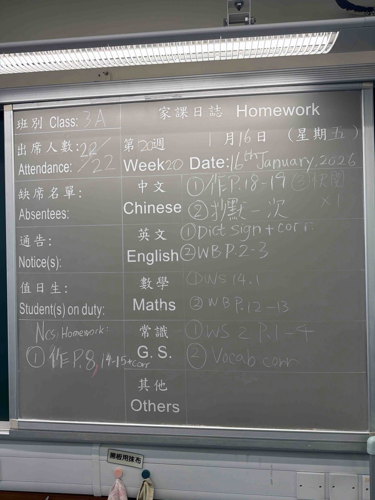 班別家課