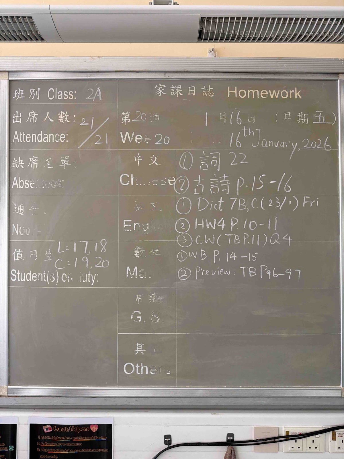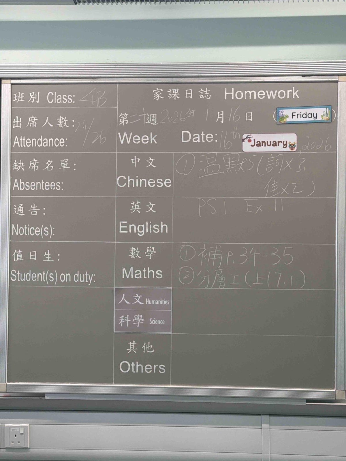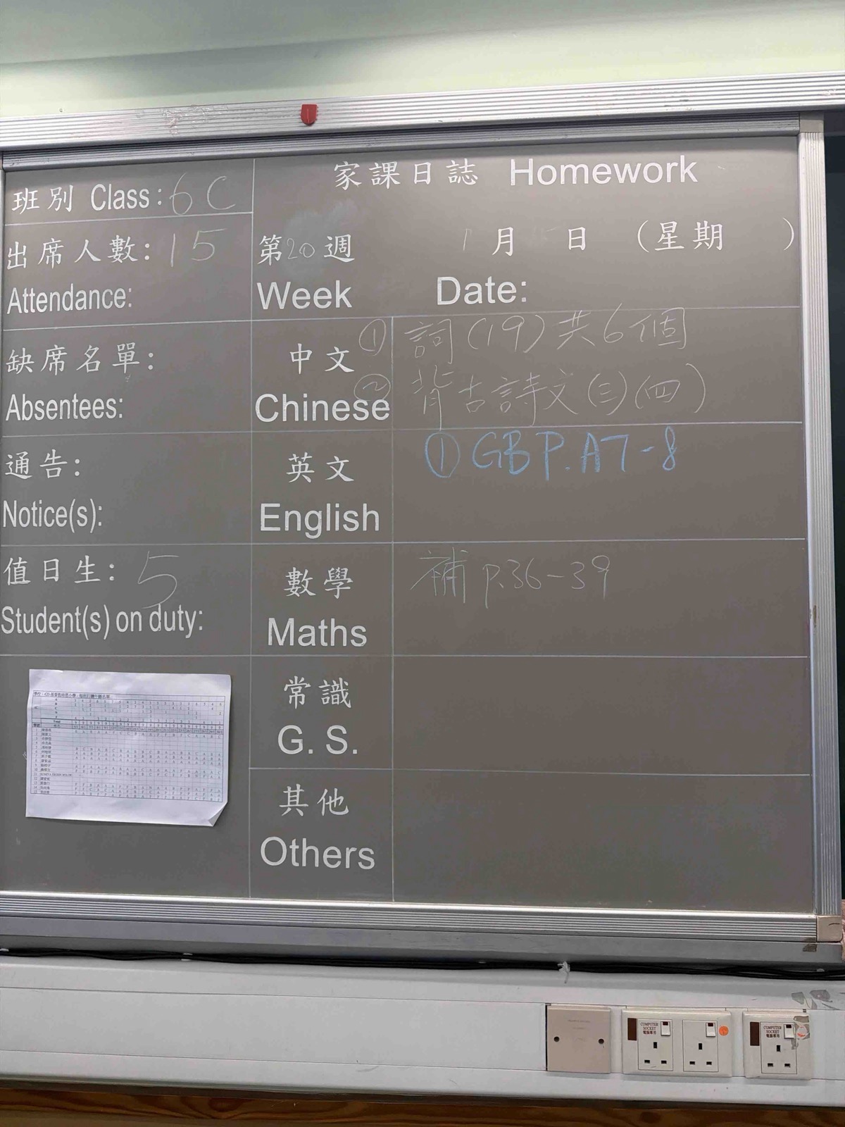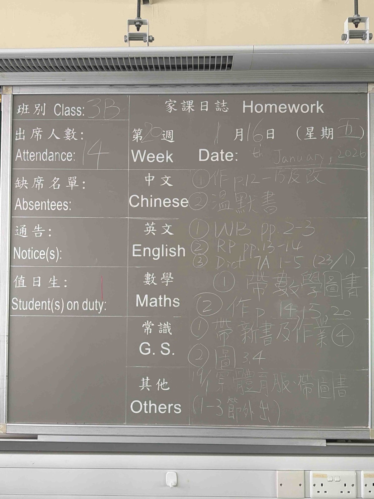 班別家課