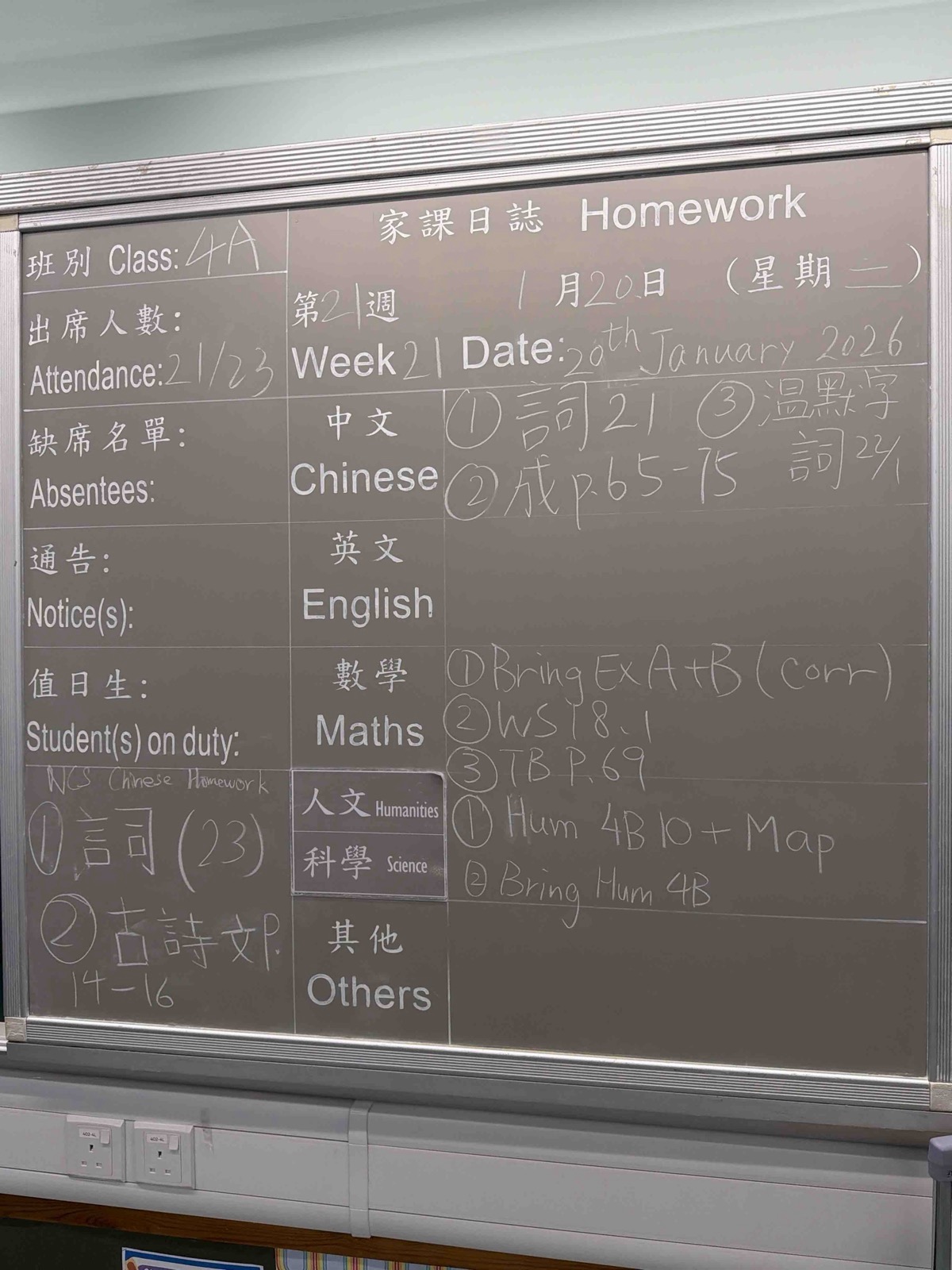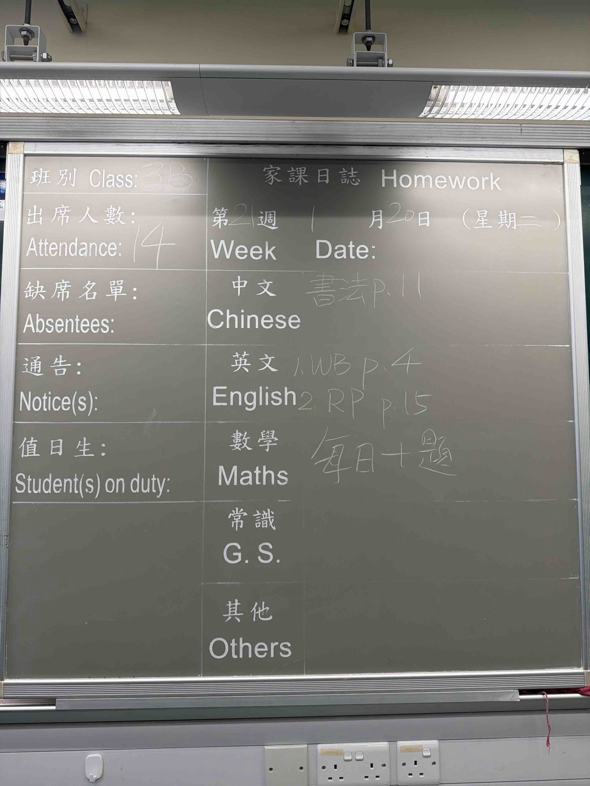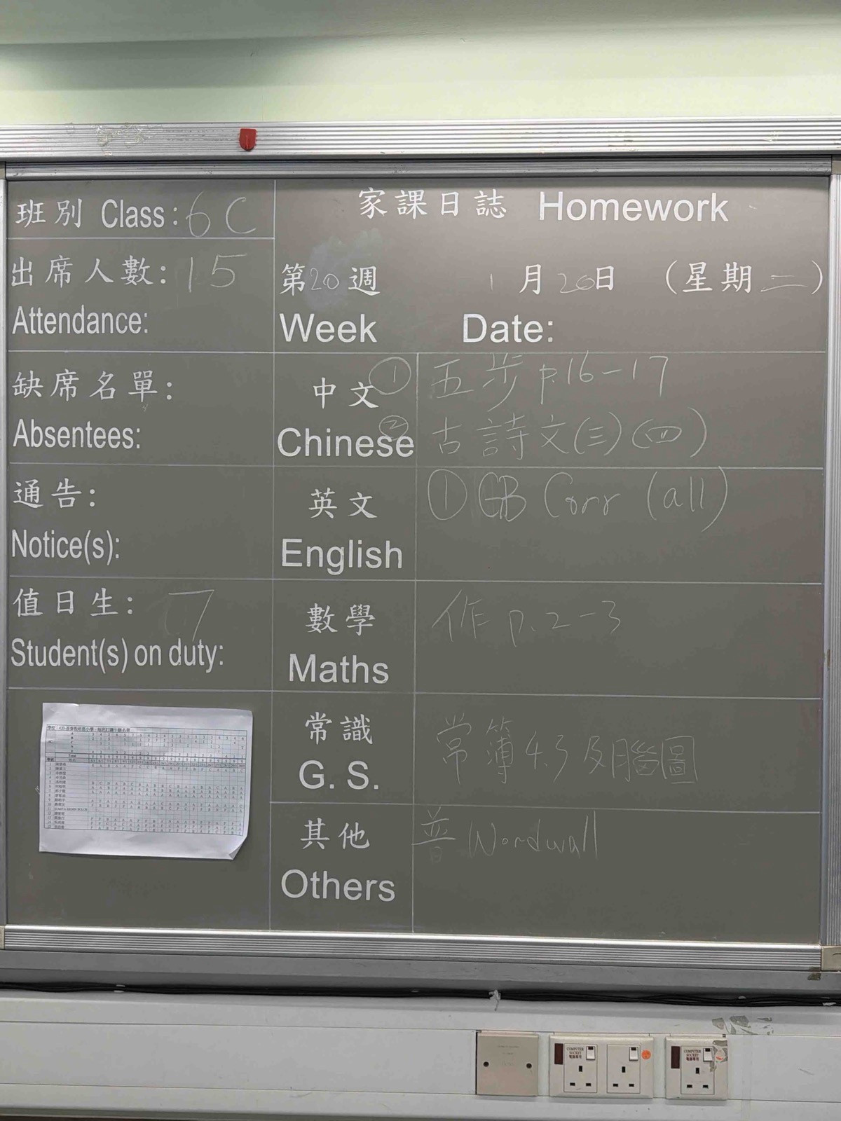 班別家課