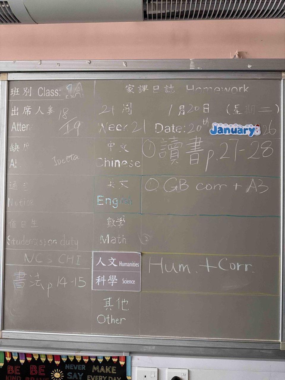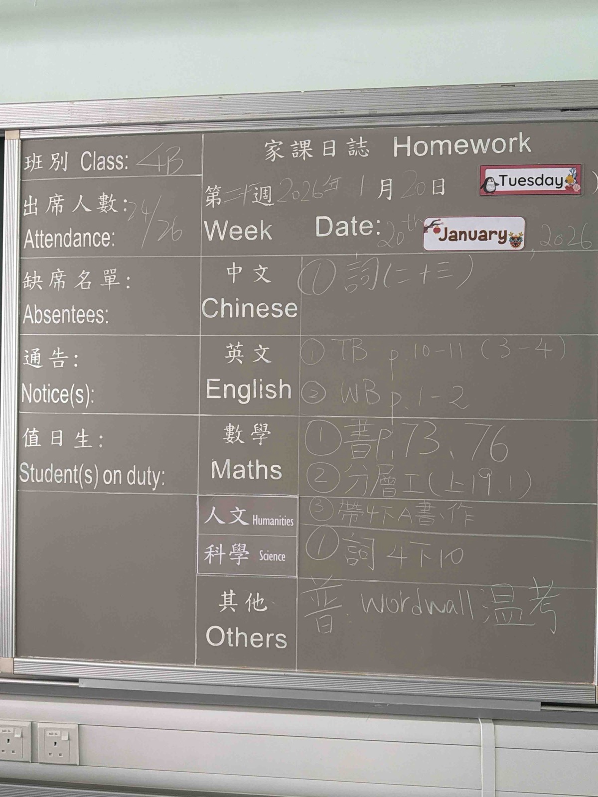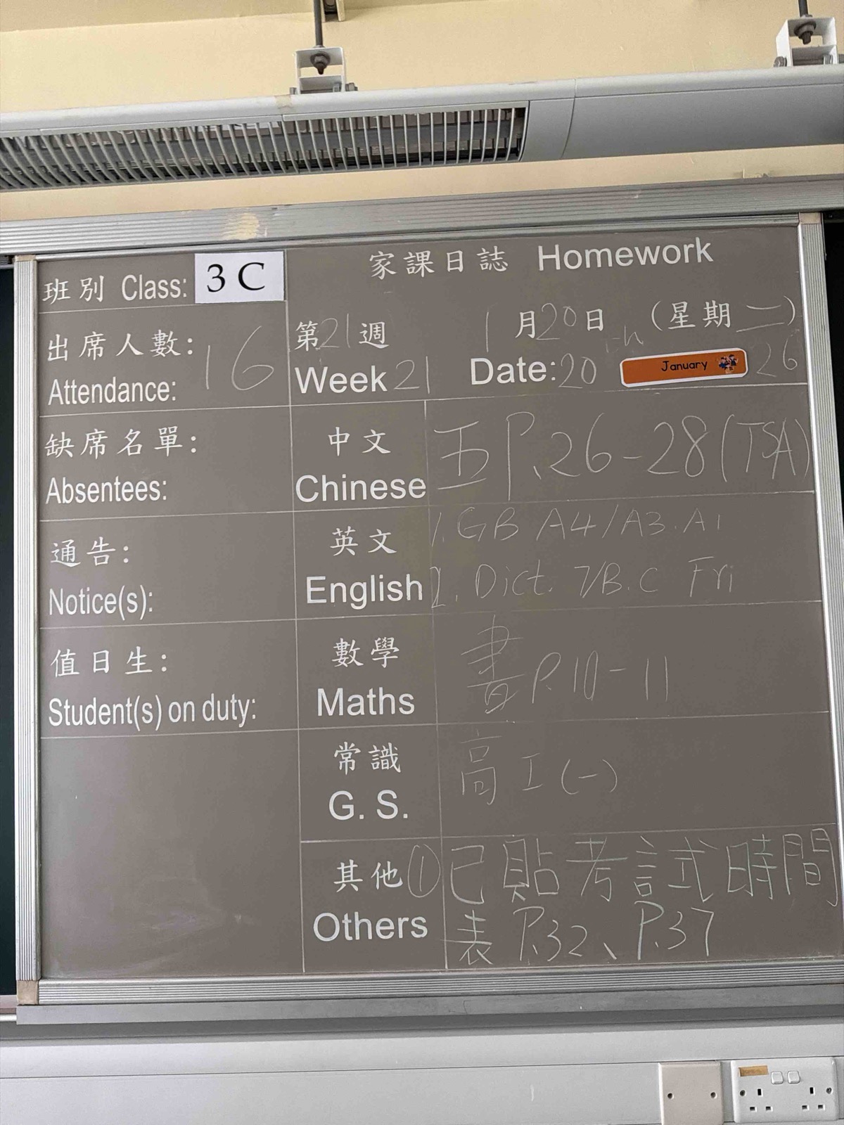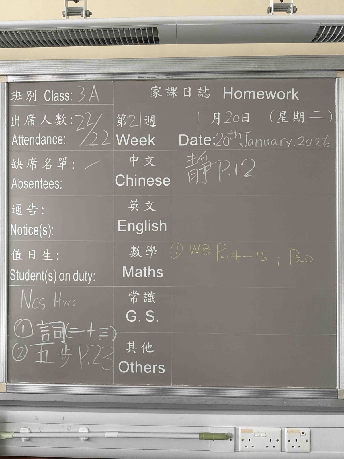 班別家課