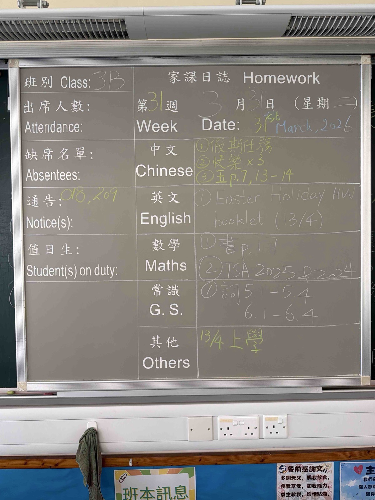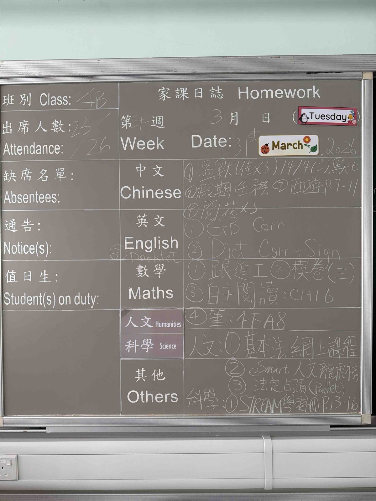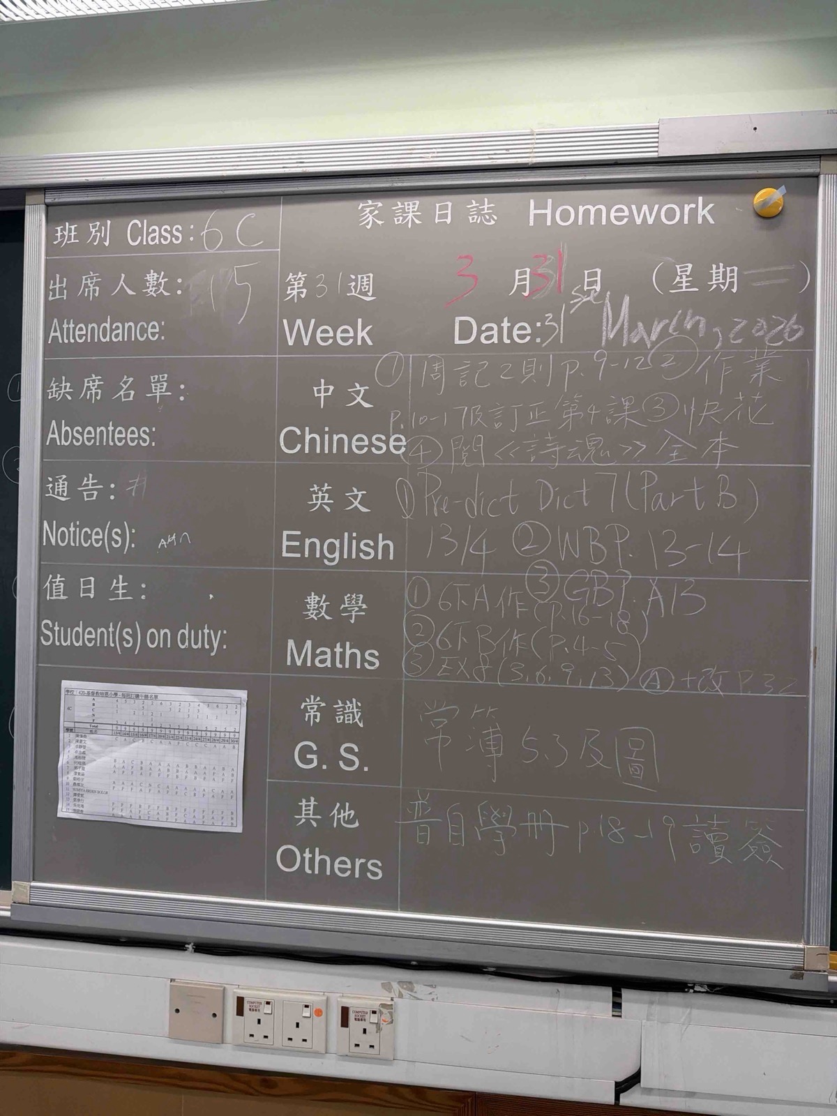 班別家課
