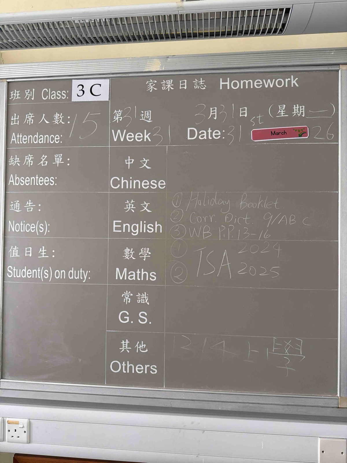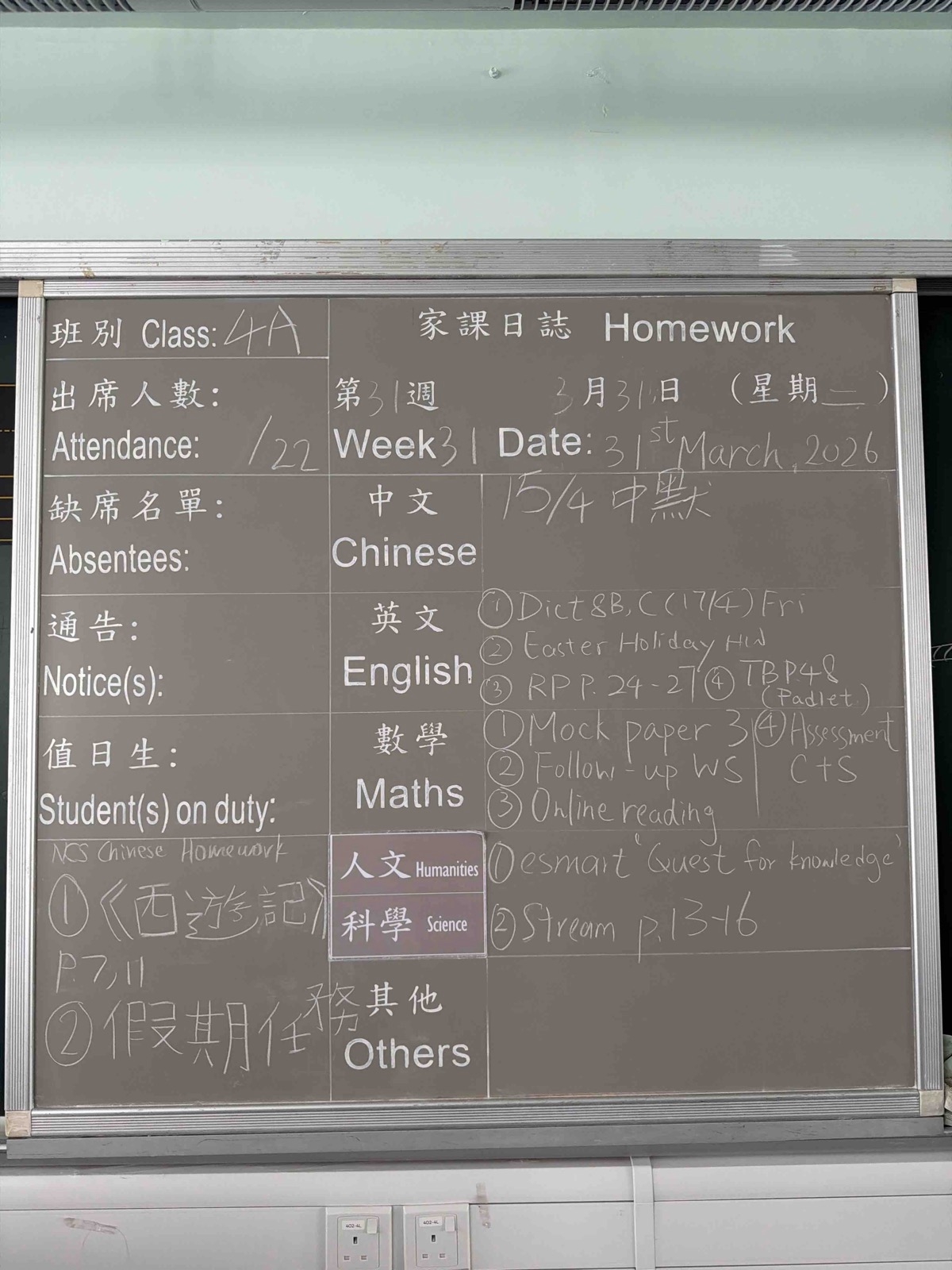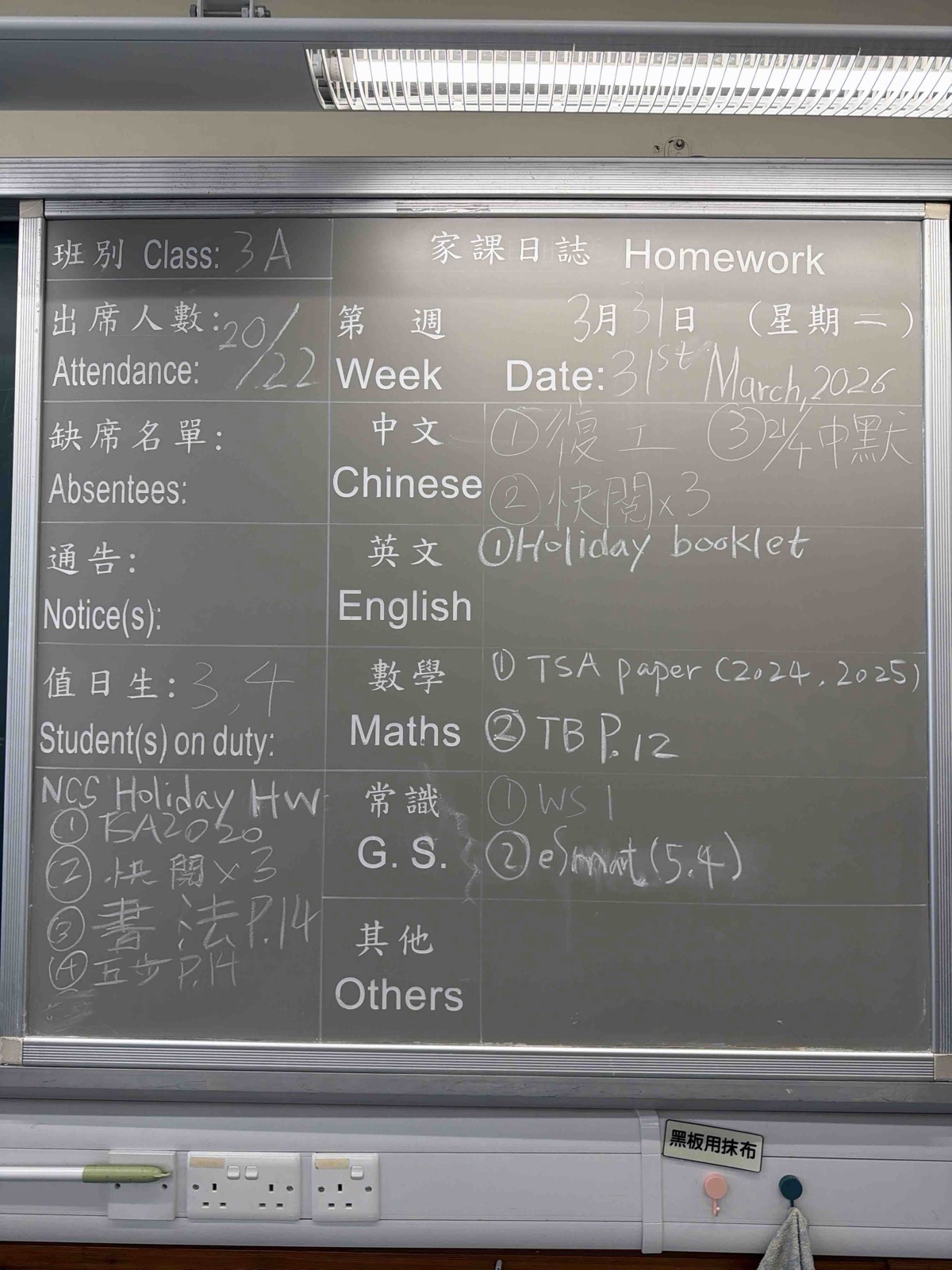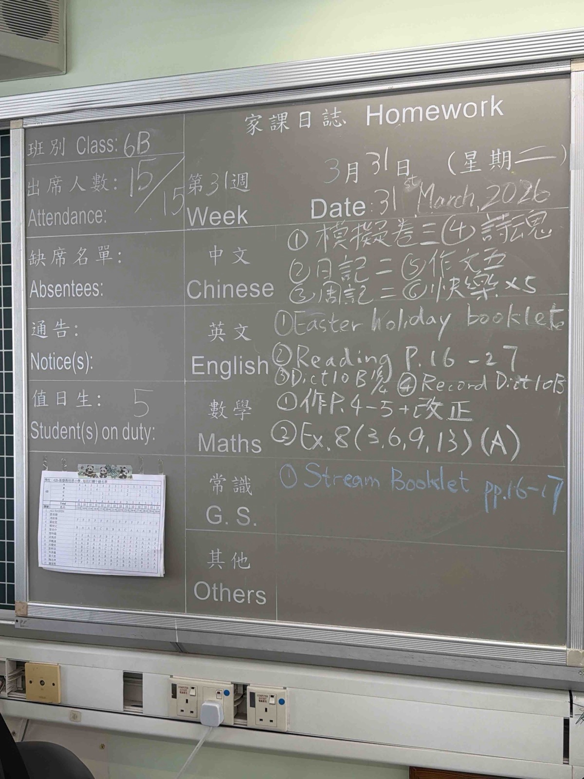 班別家課