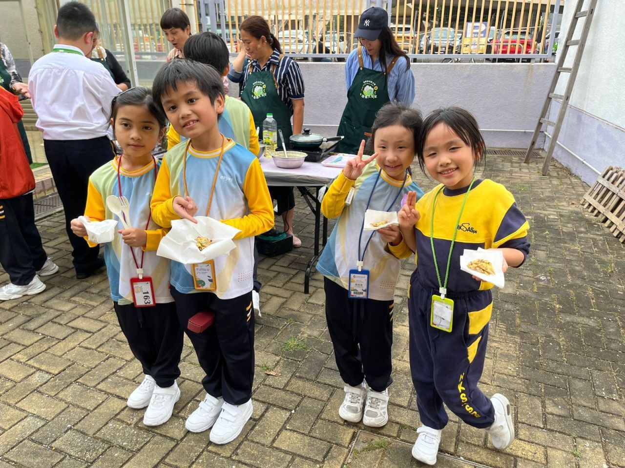 當日請同學在第一小息在綠田園摘取香蔥,然後家長製作蔥餅,第二小息時全校同學都可品嚐,老師們和同學都感到非常開心「有得食」呢!
