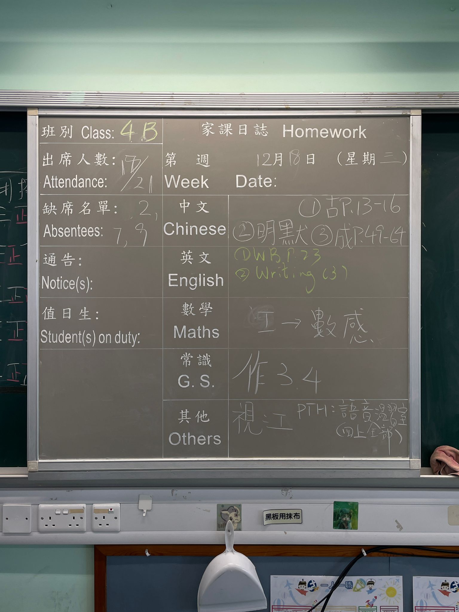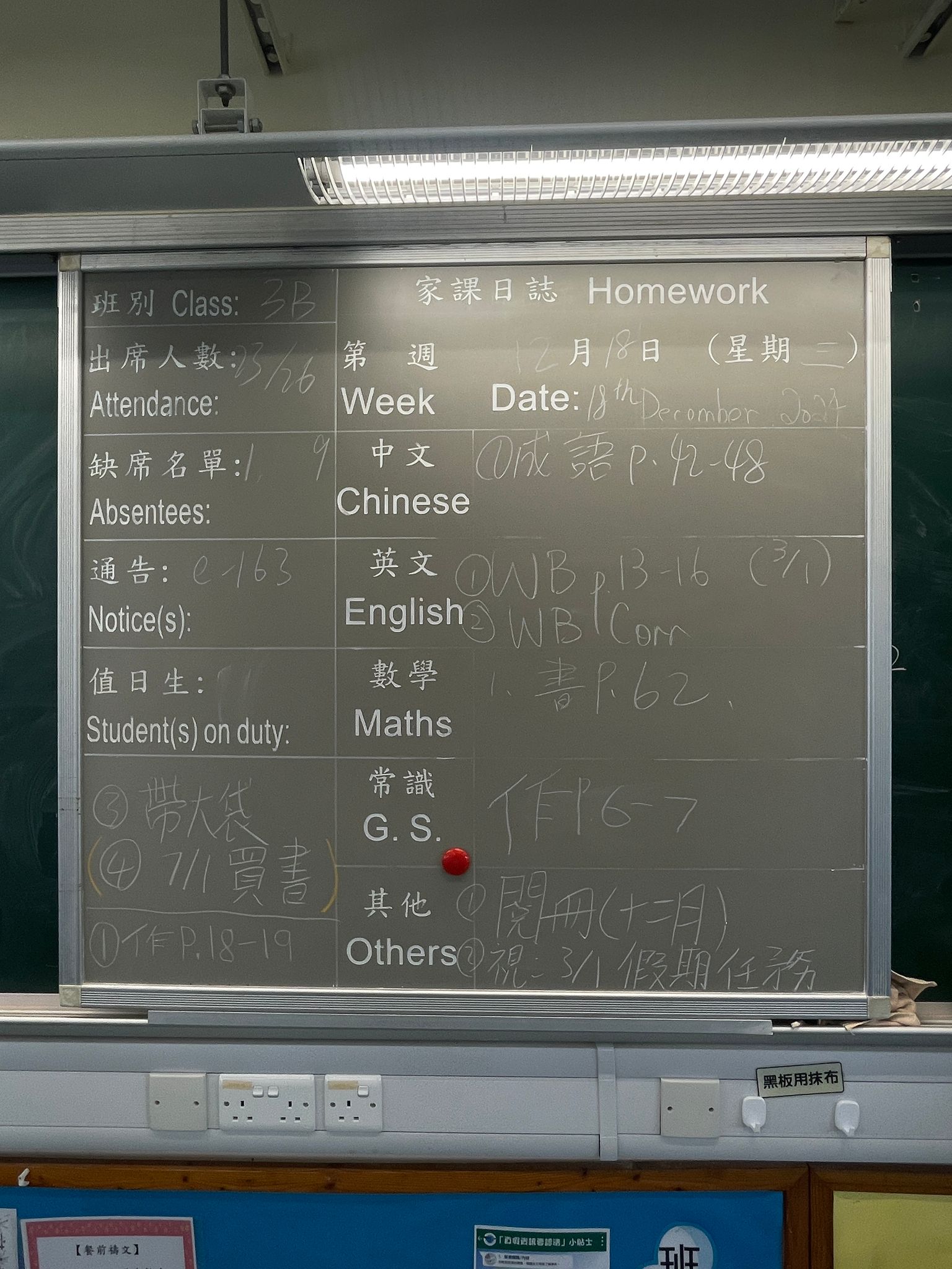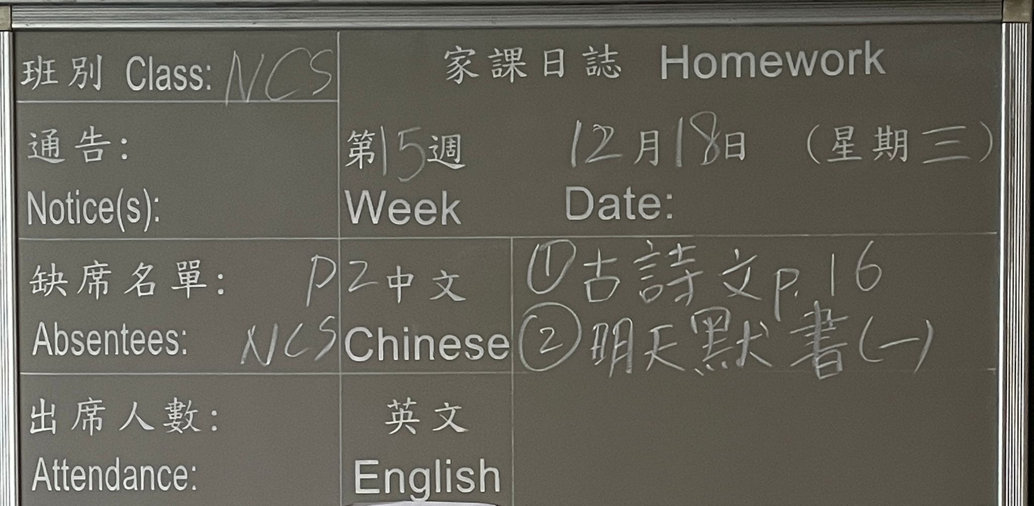 班別家課