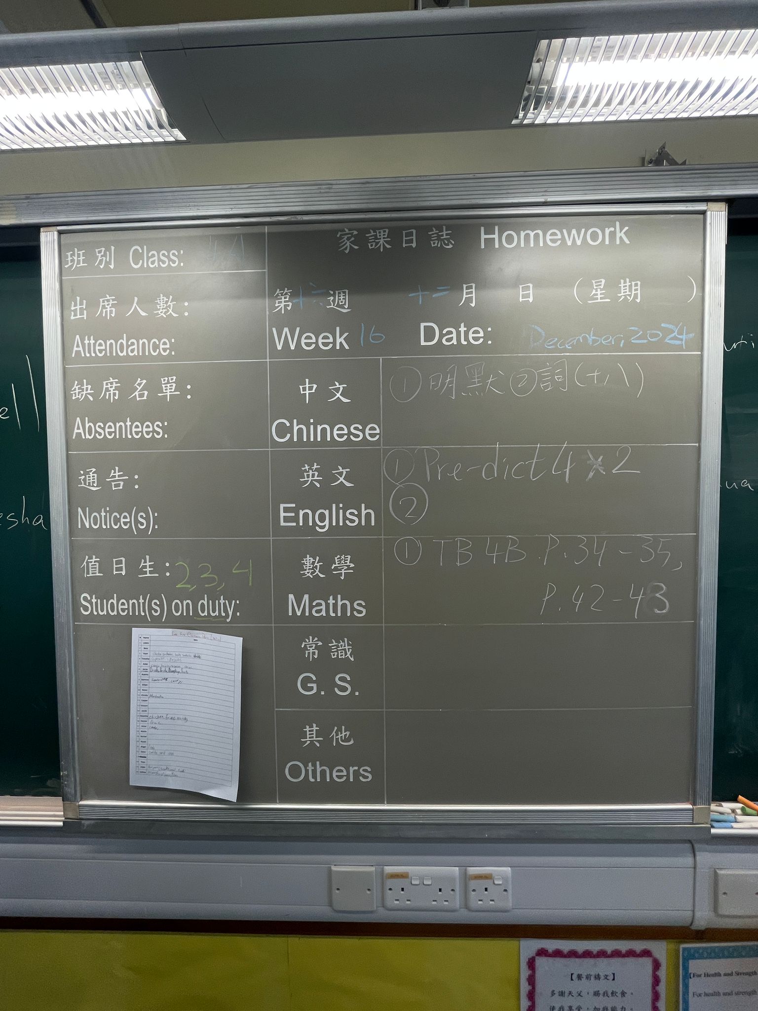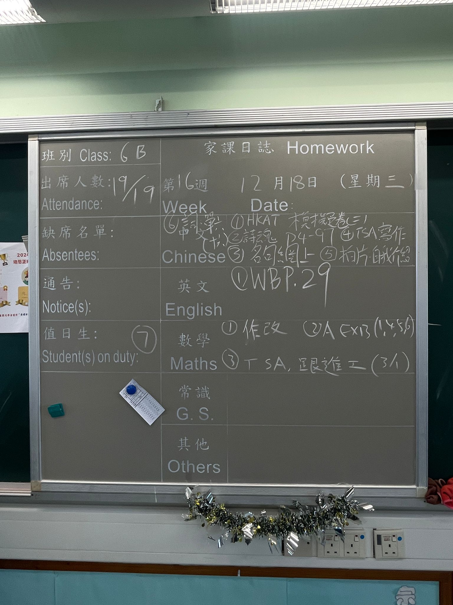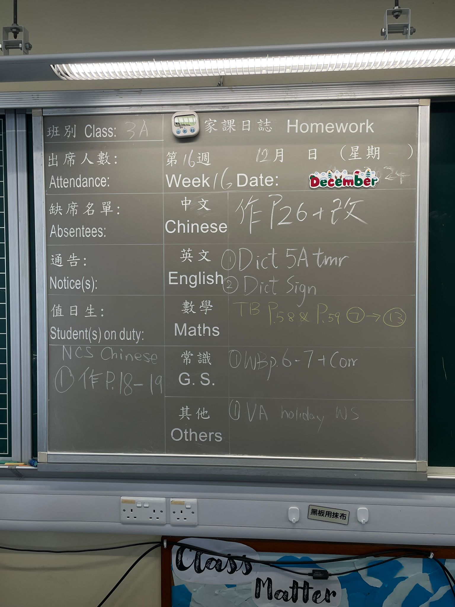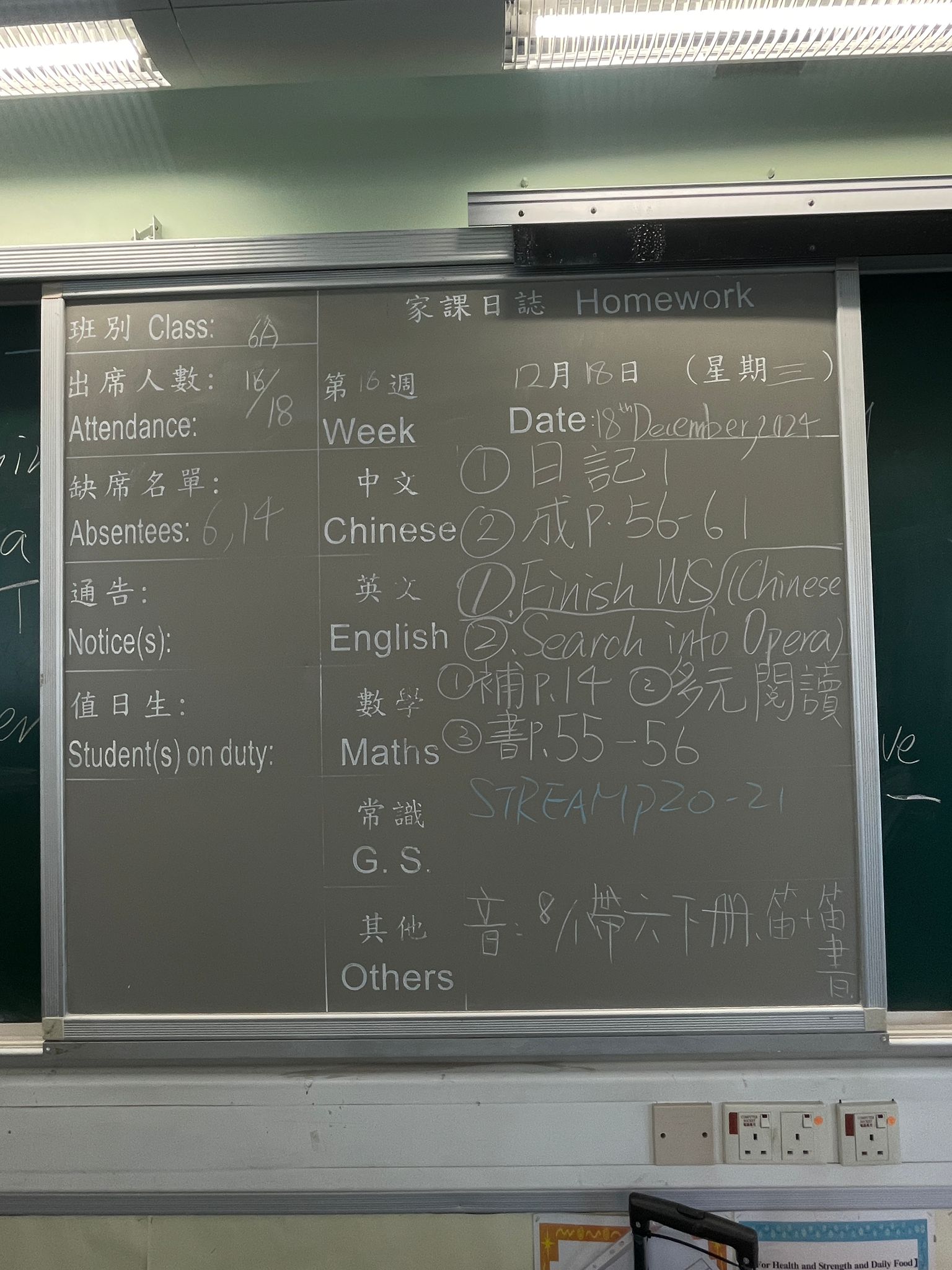 班別家課