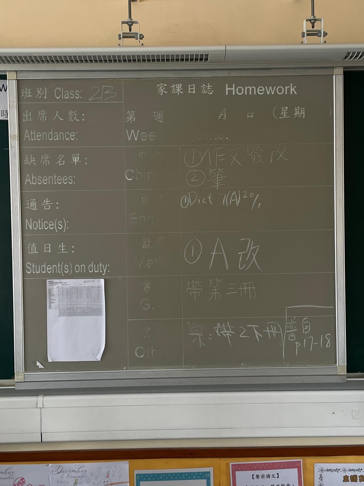 班別家課