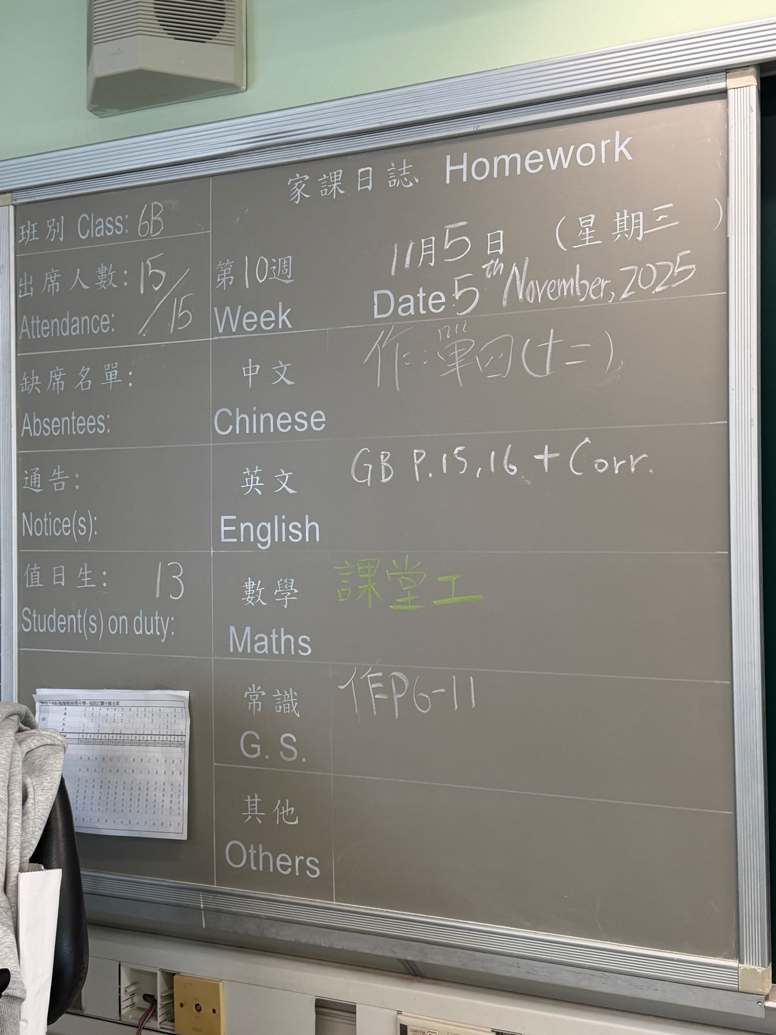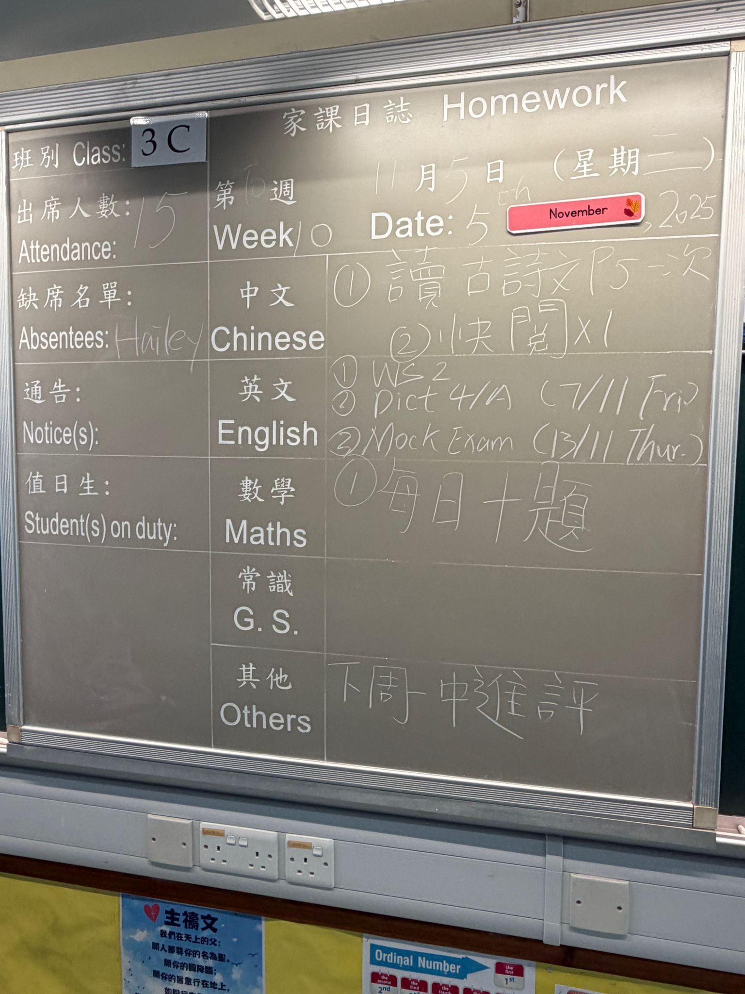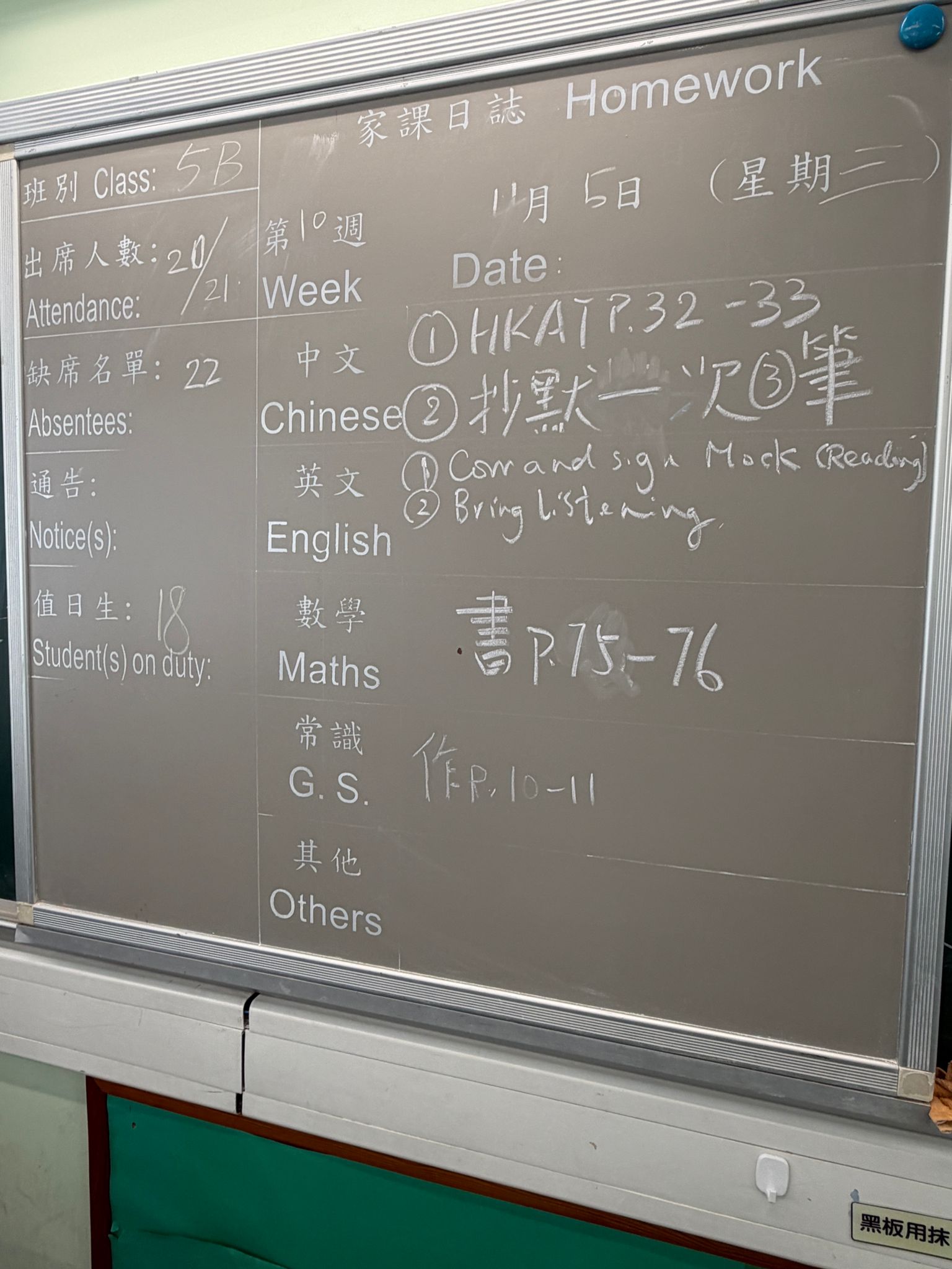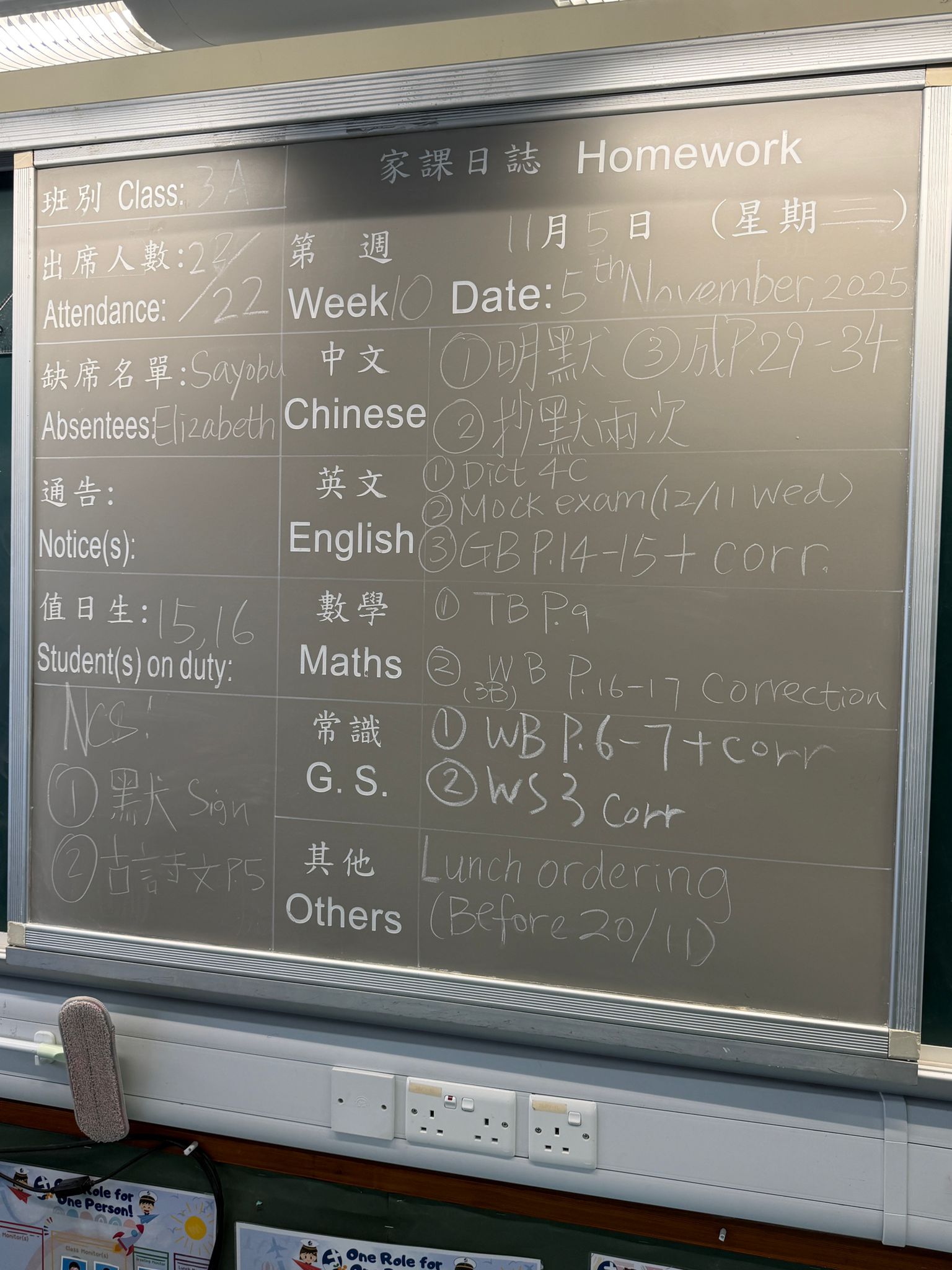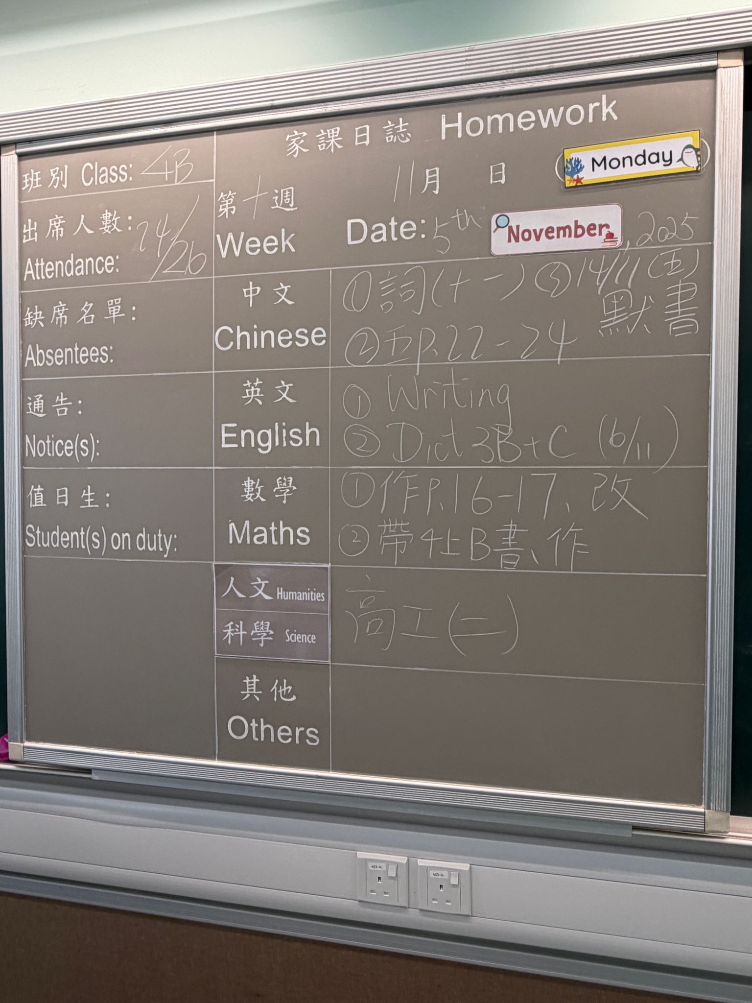 班別家課