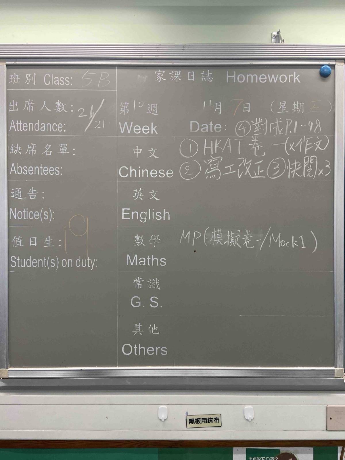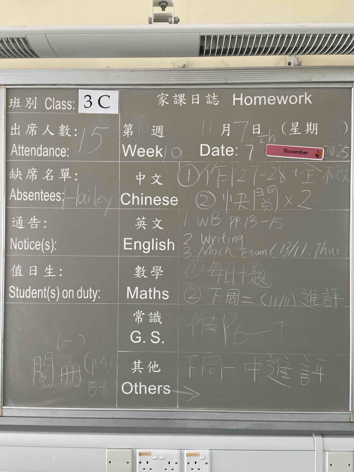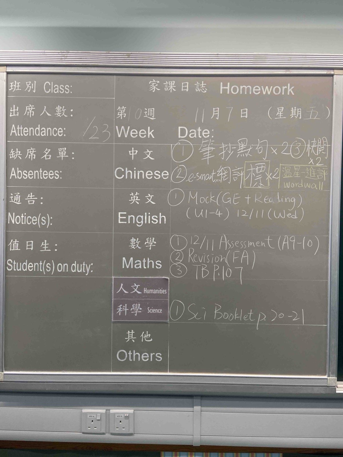 班別家課