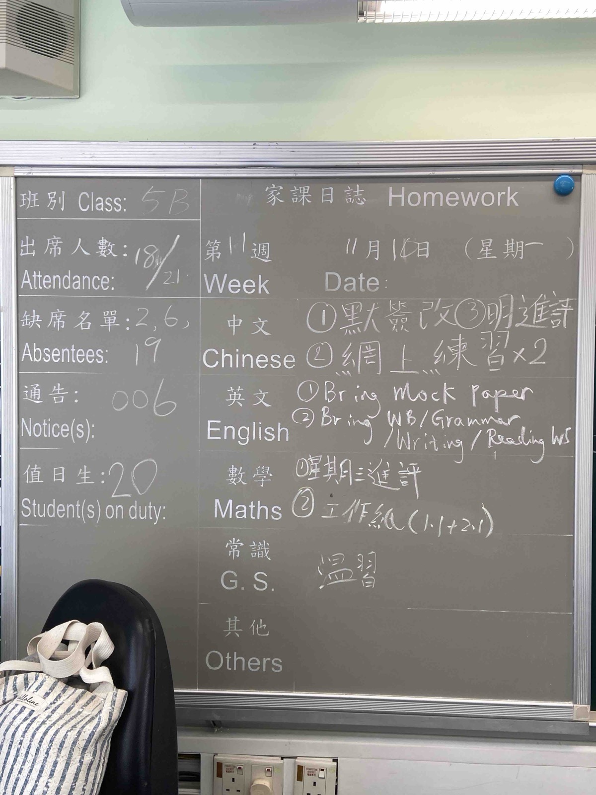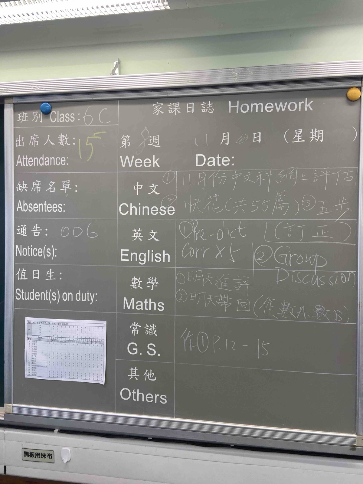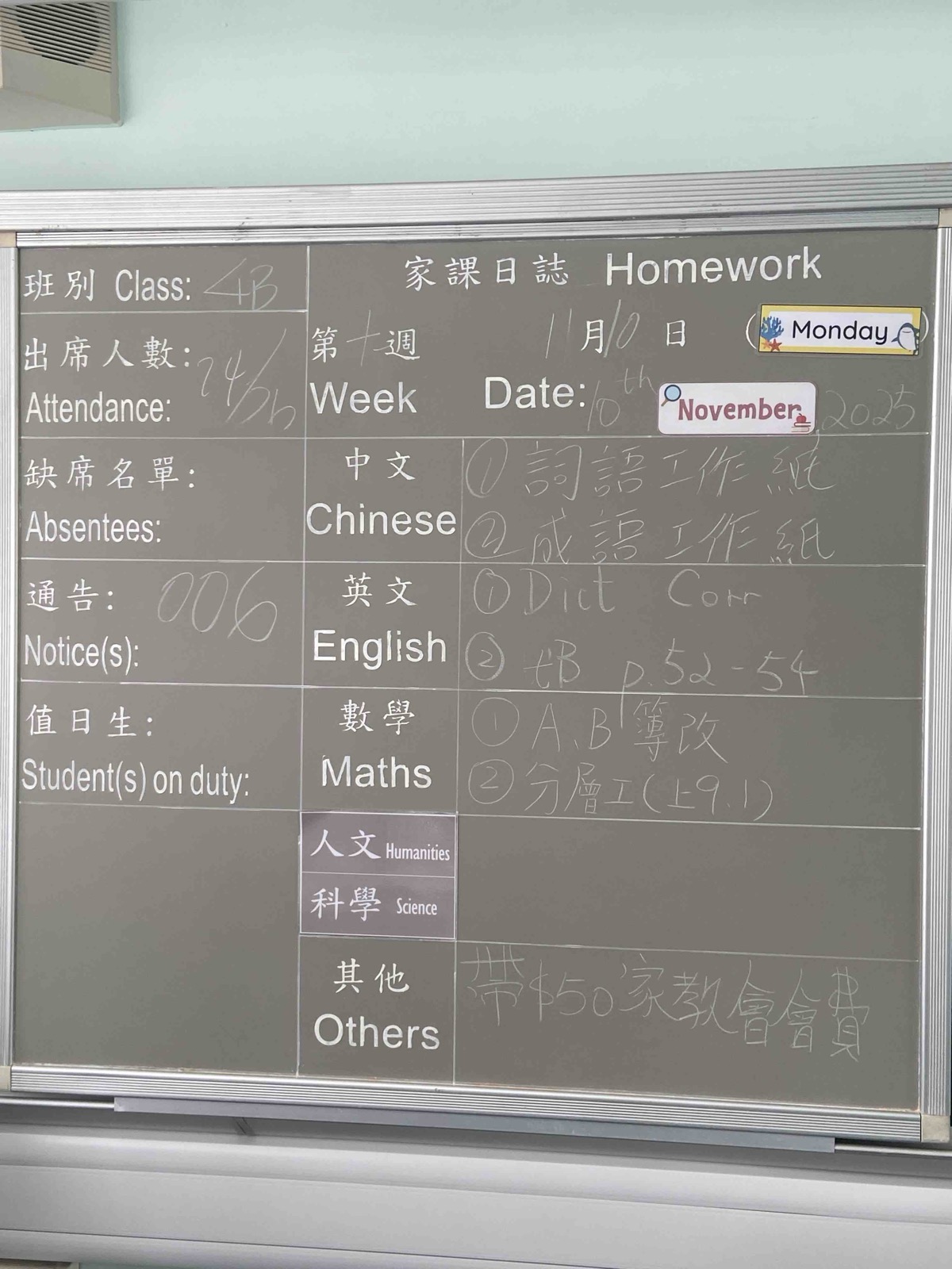 班別家課