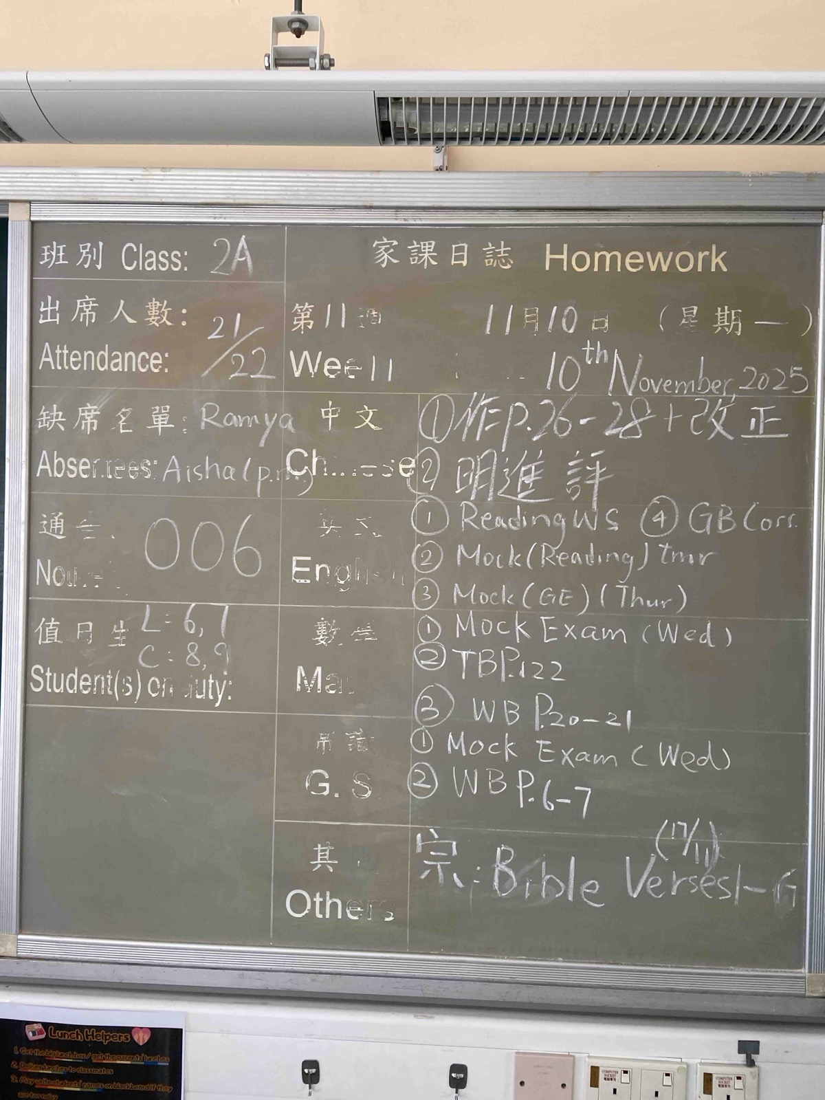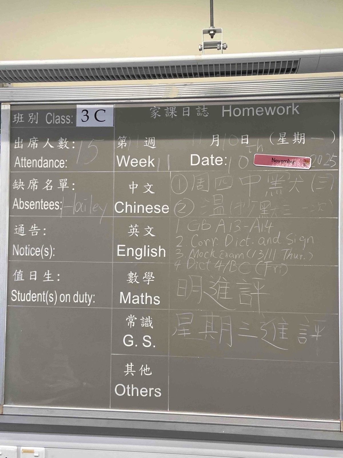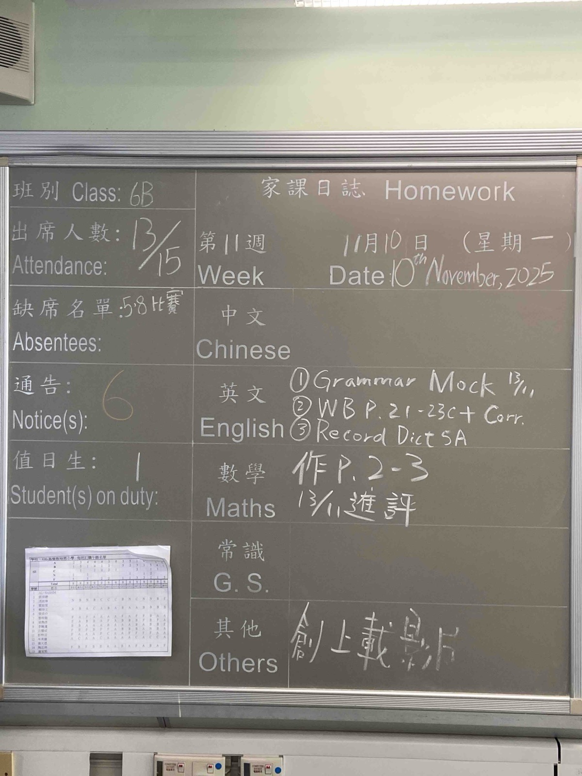 班別家課