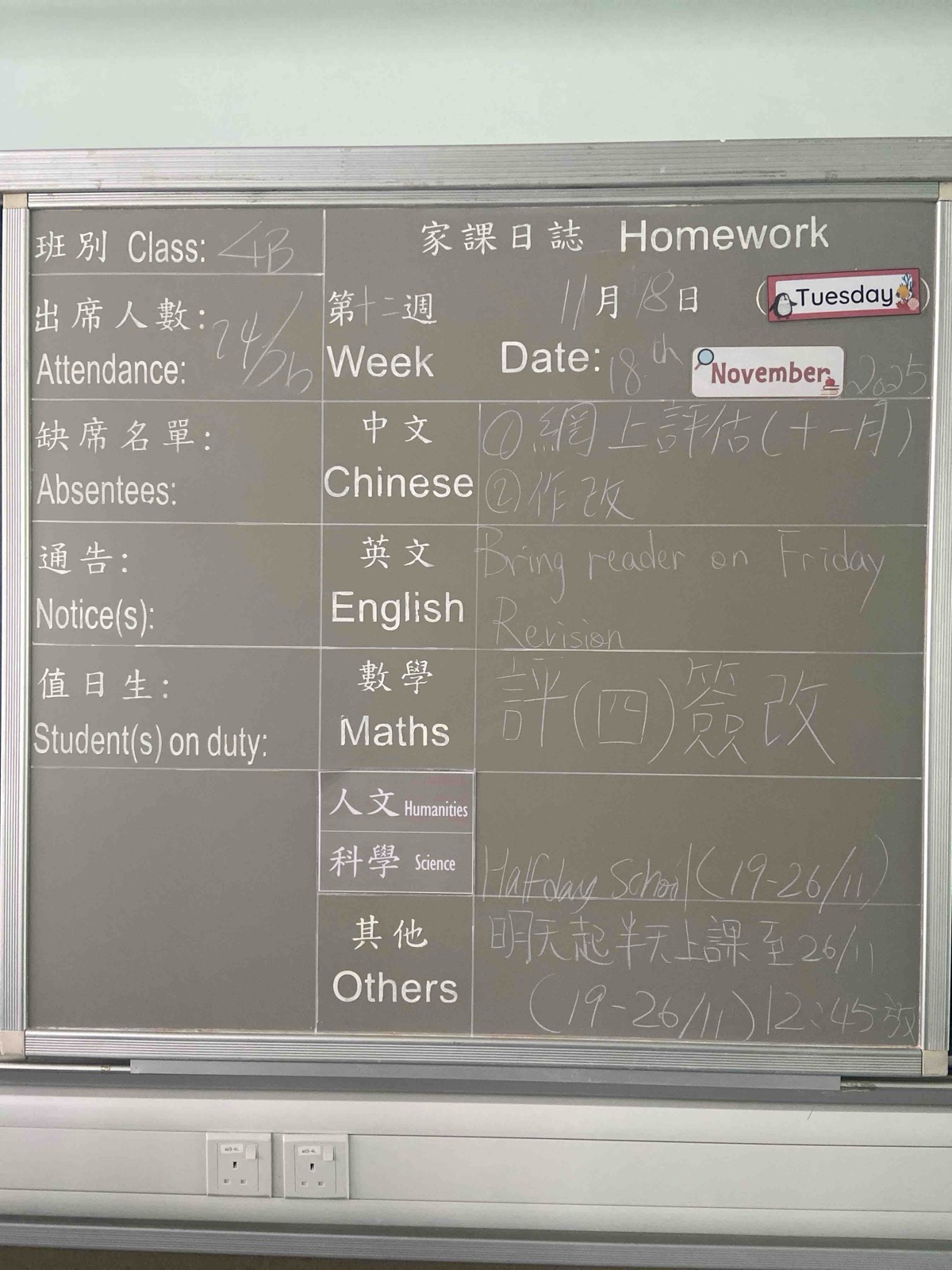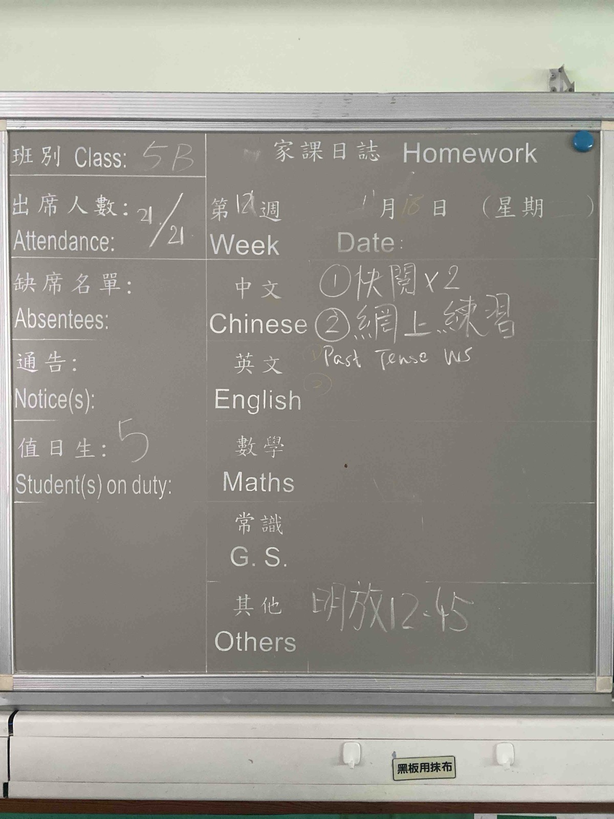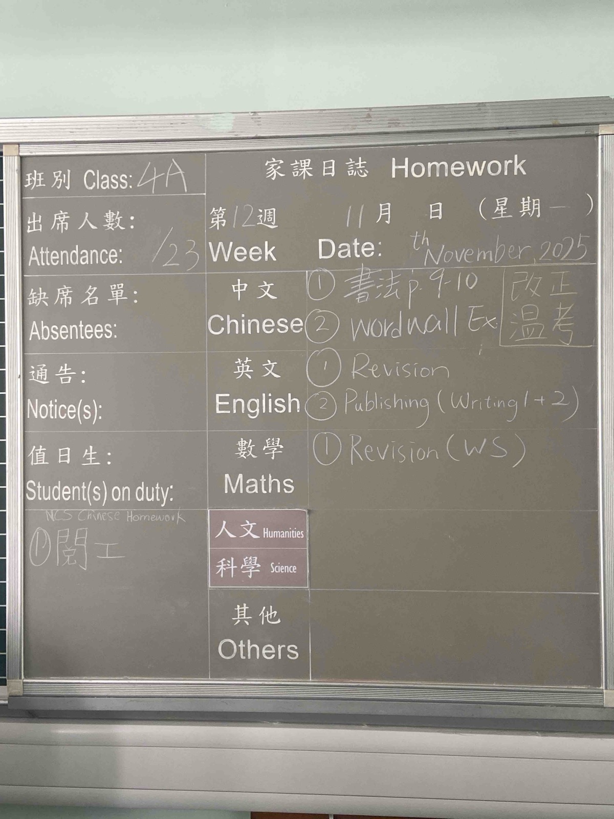 班別家課