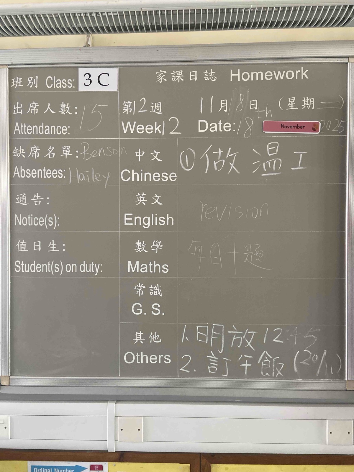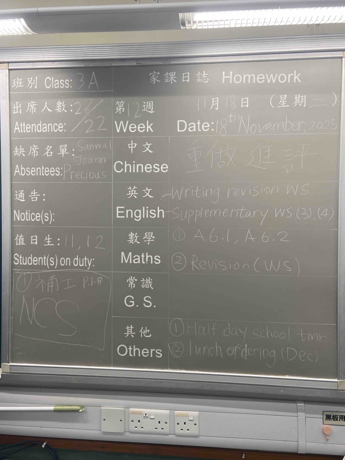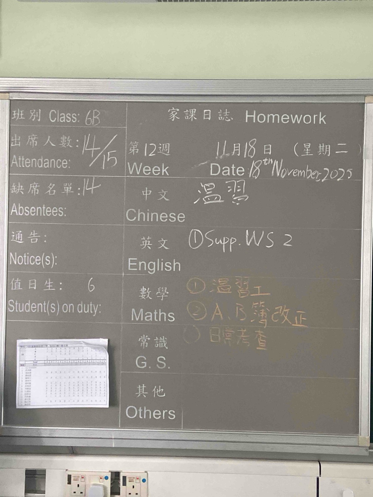 班別家課