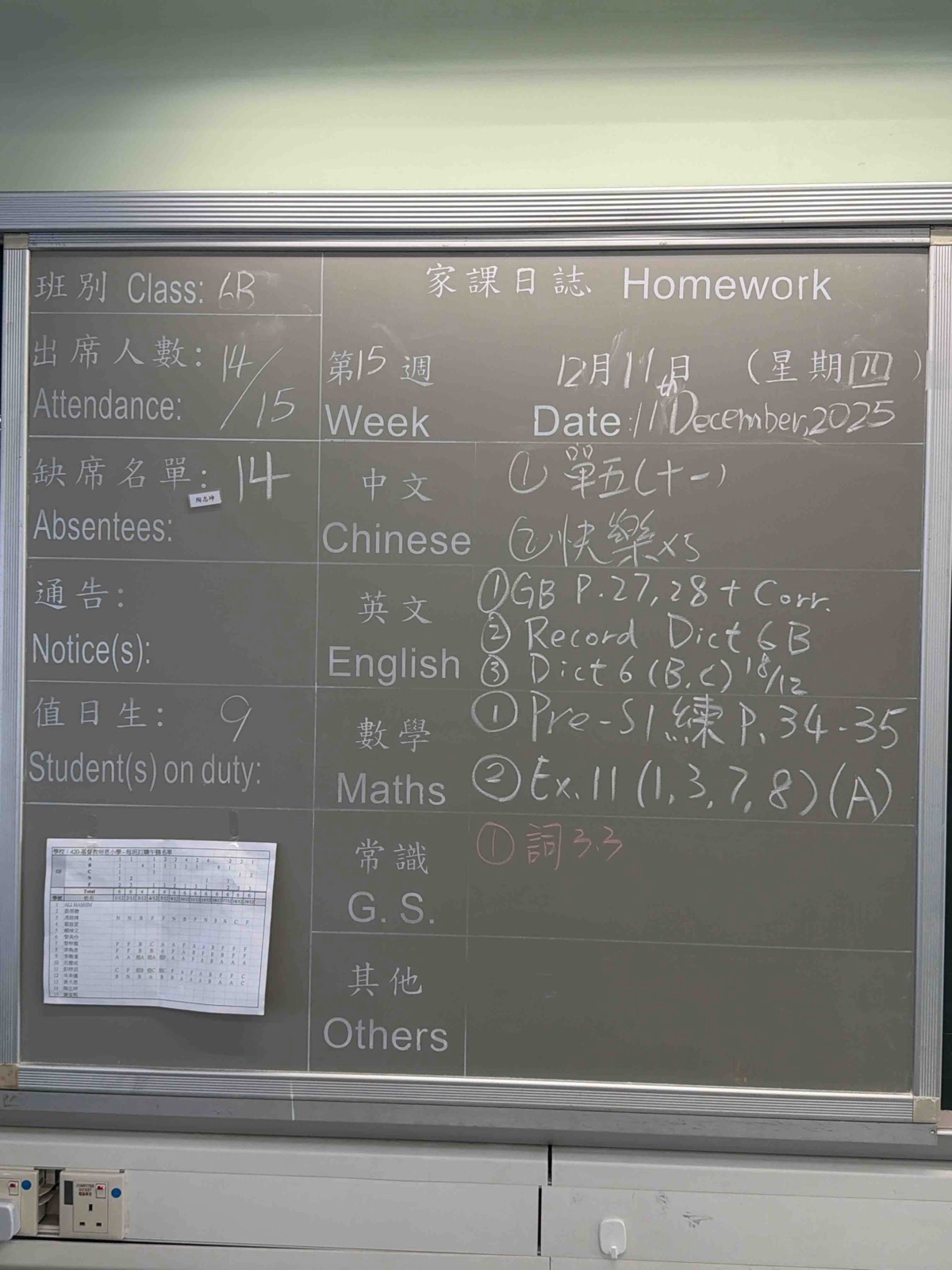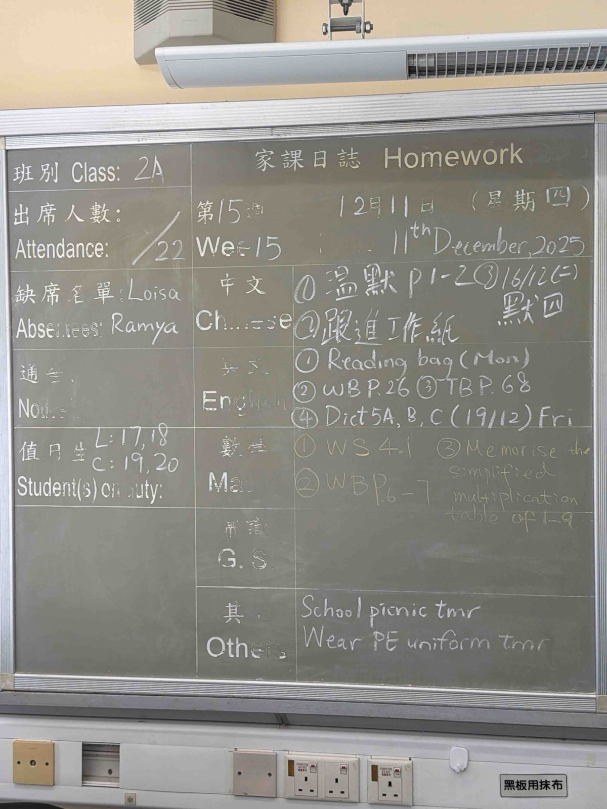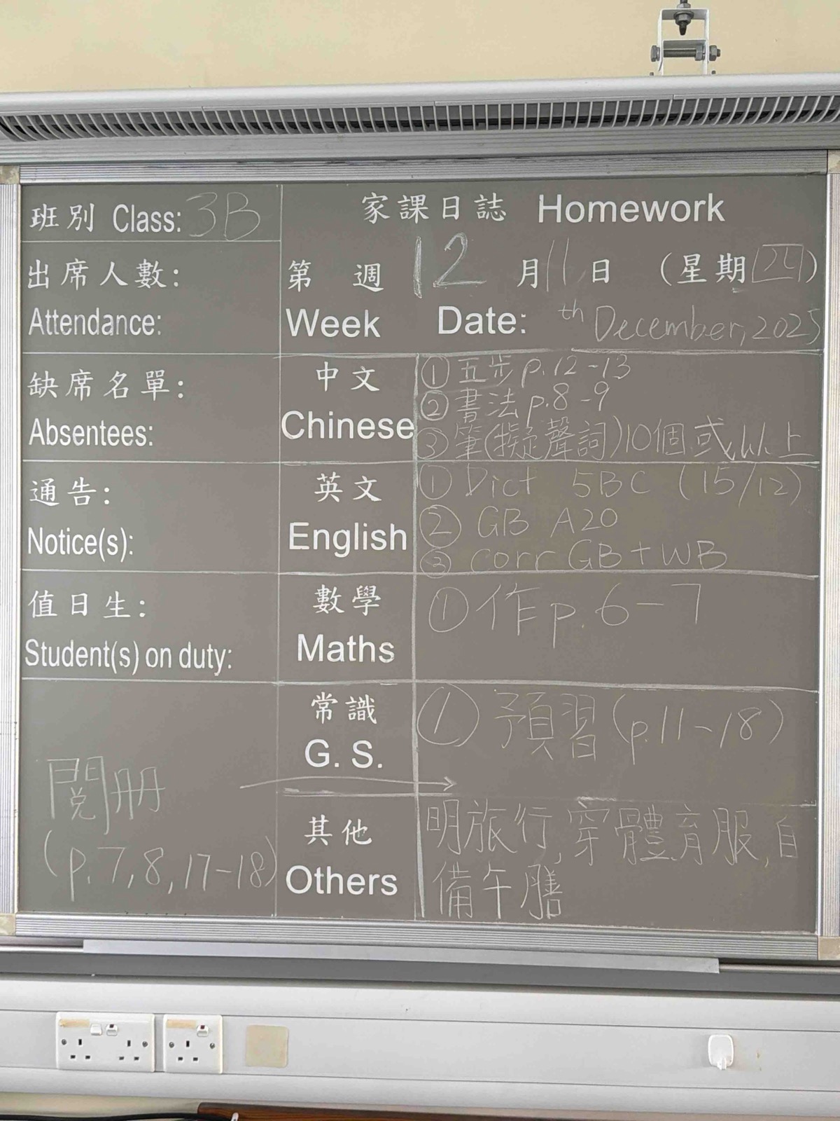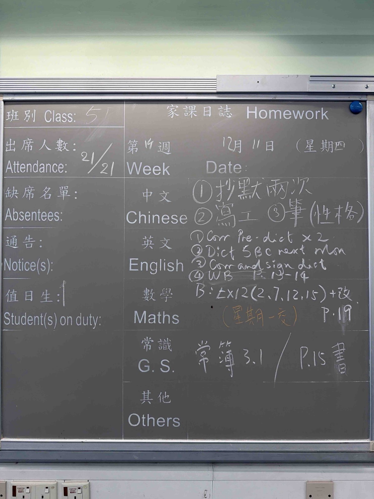 班別家課