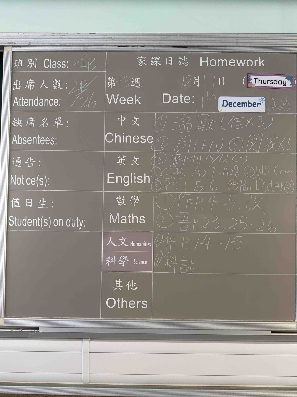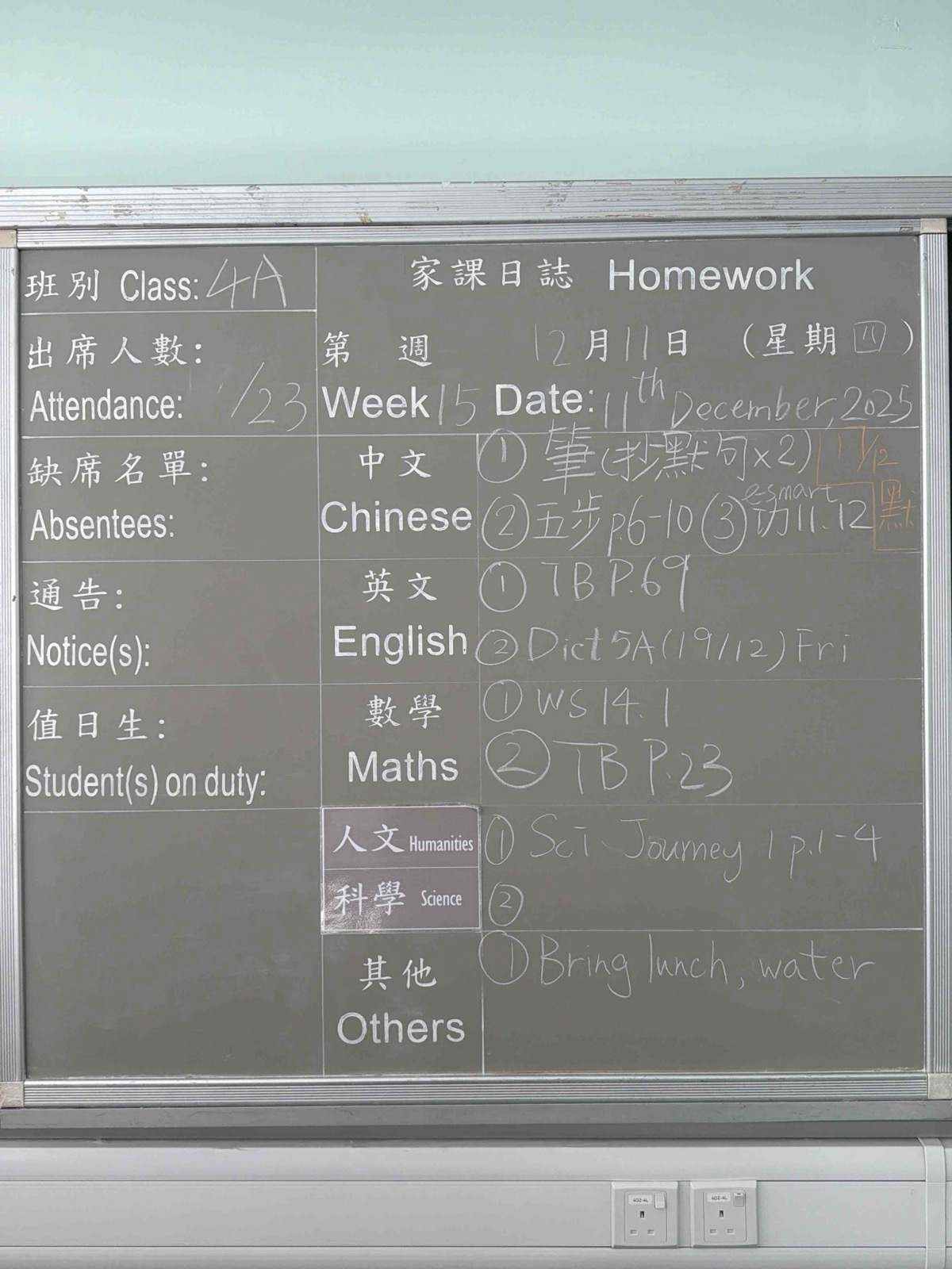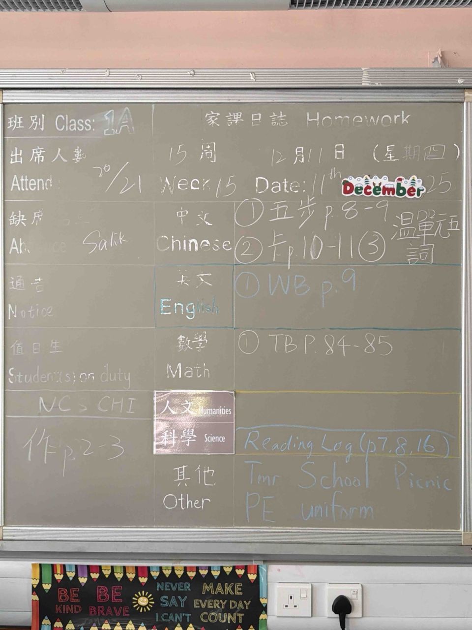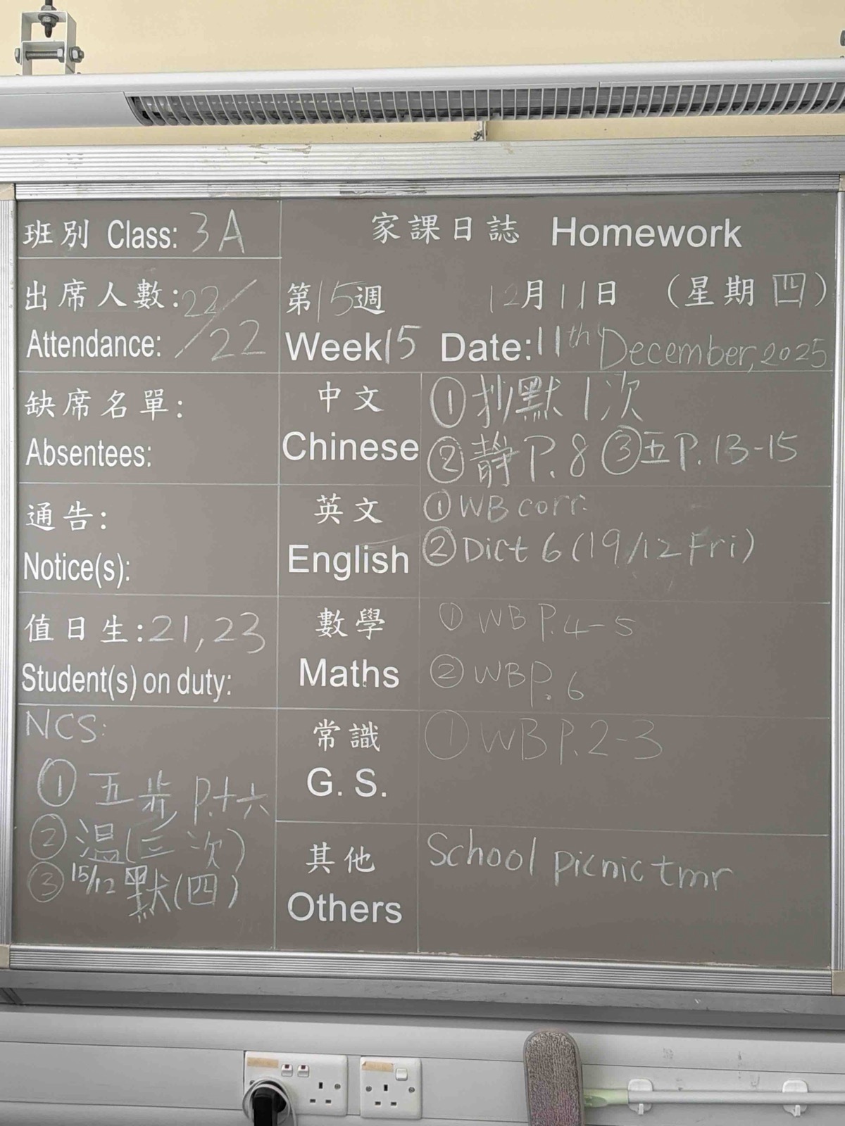 班別家課