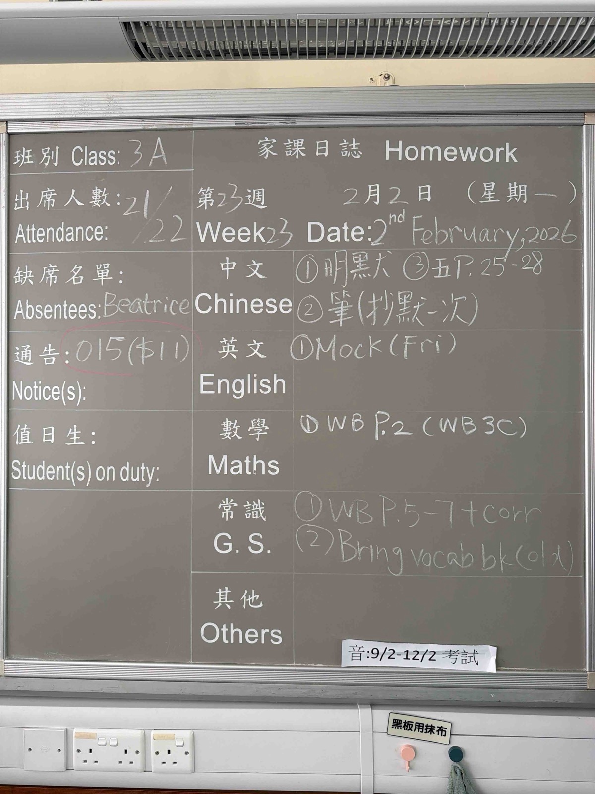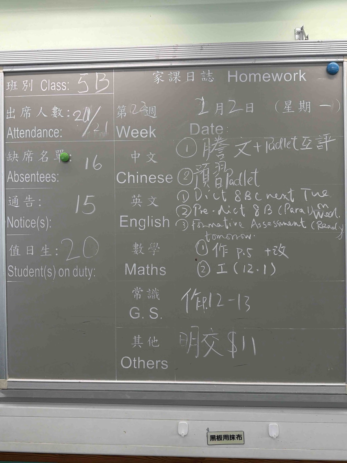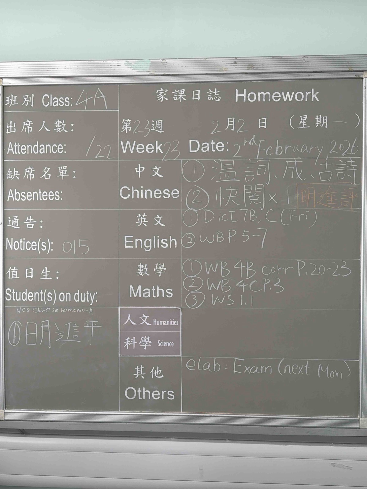 班別家課