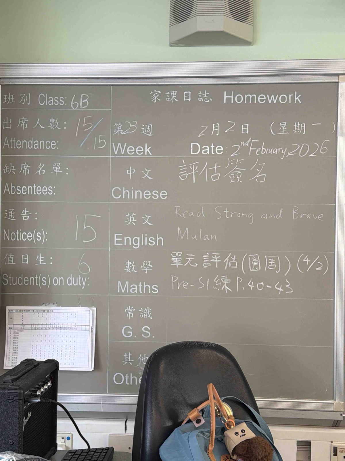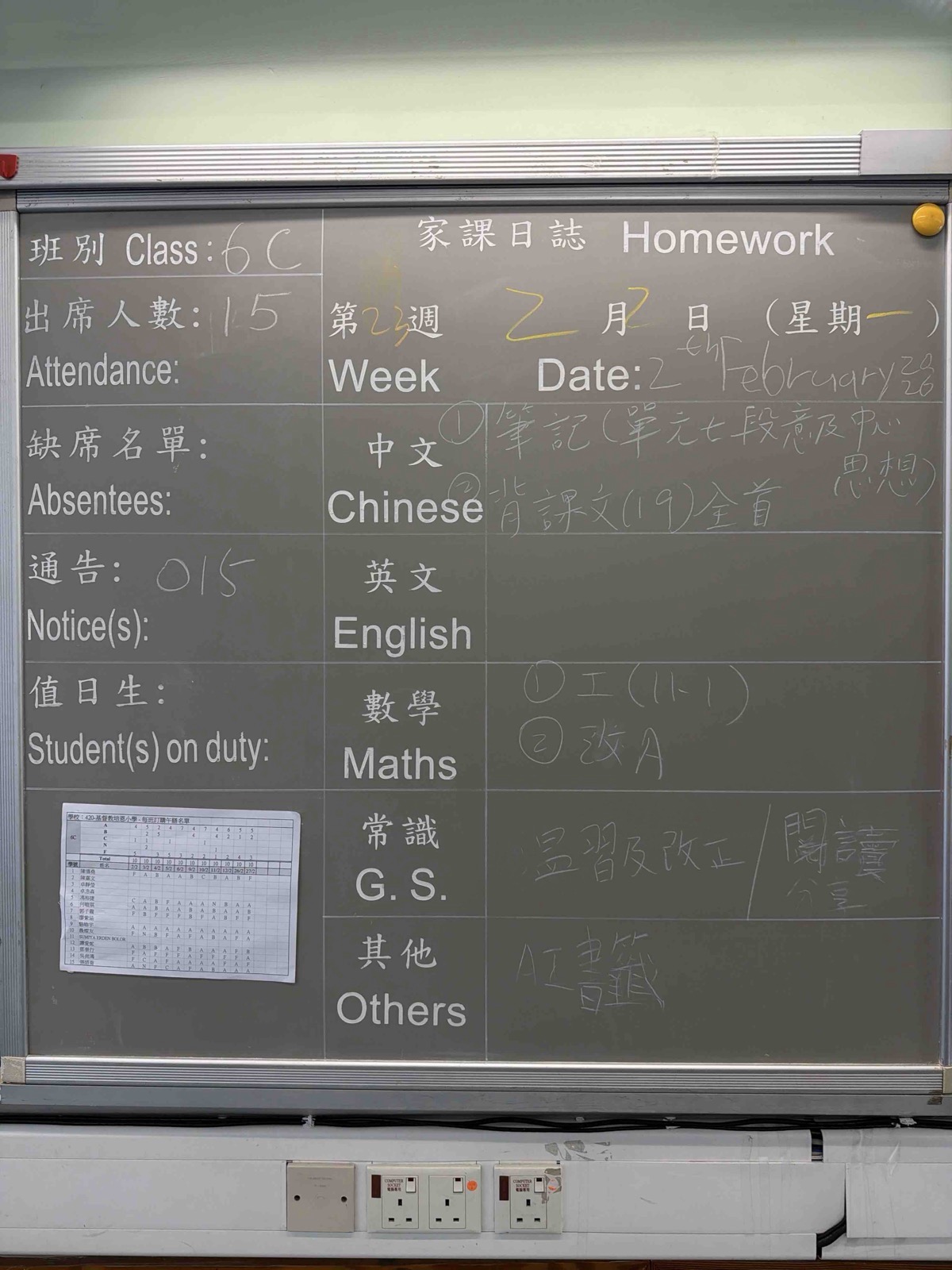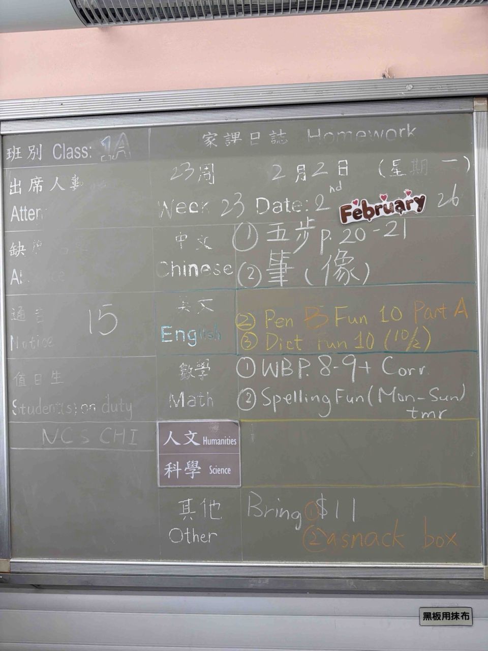 班別家課