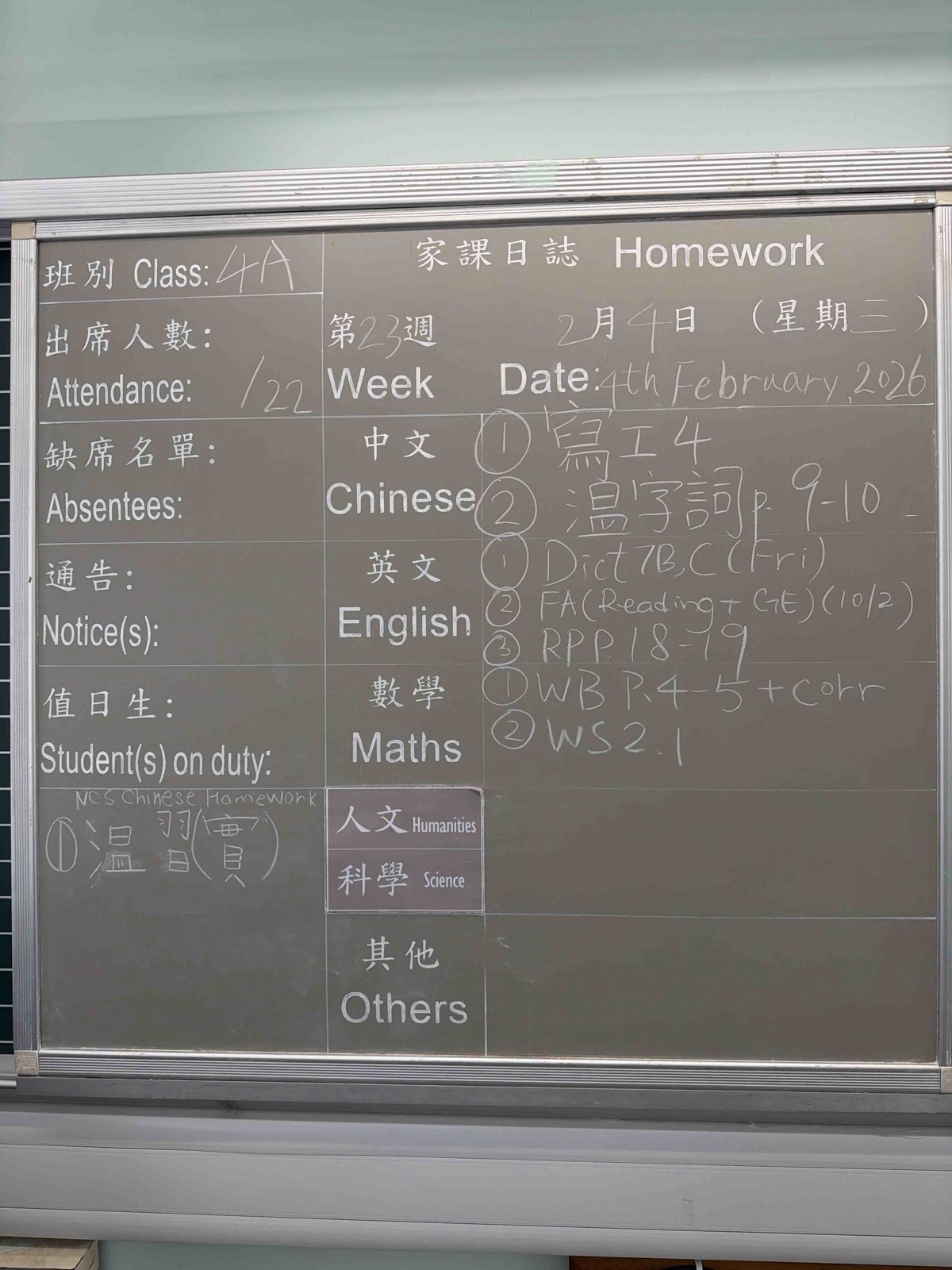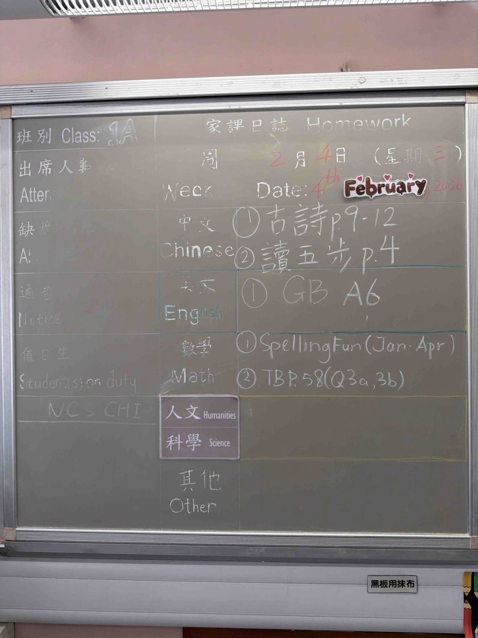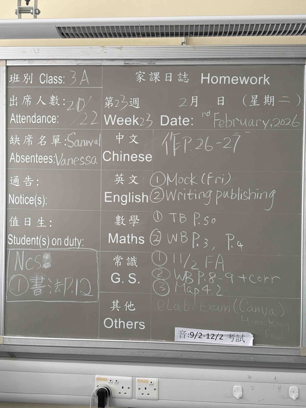 班別家課