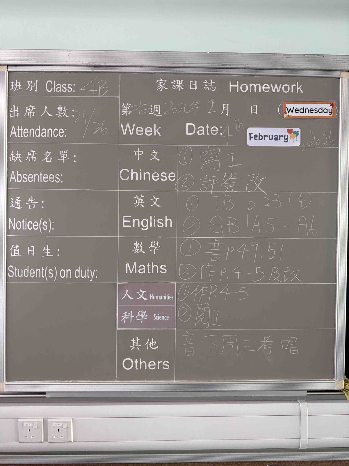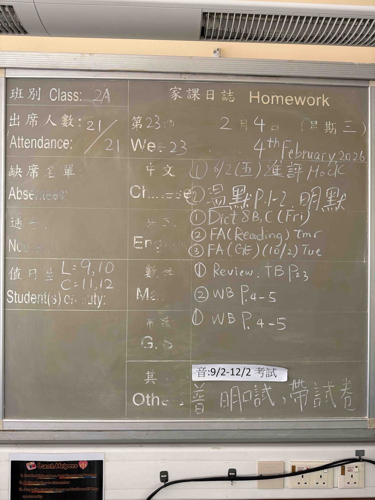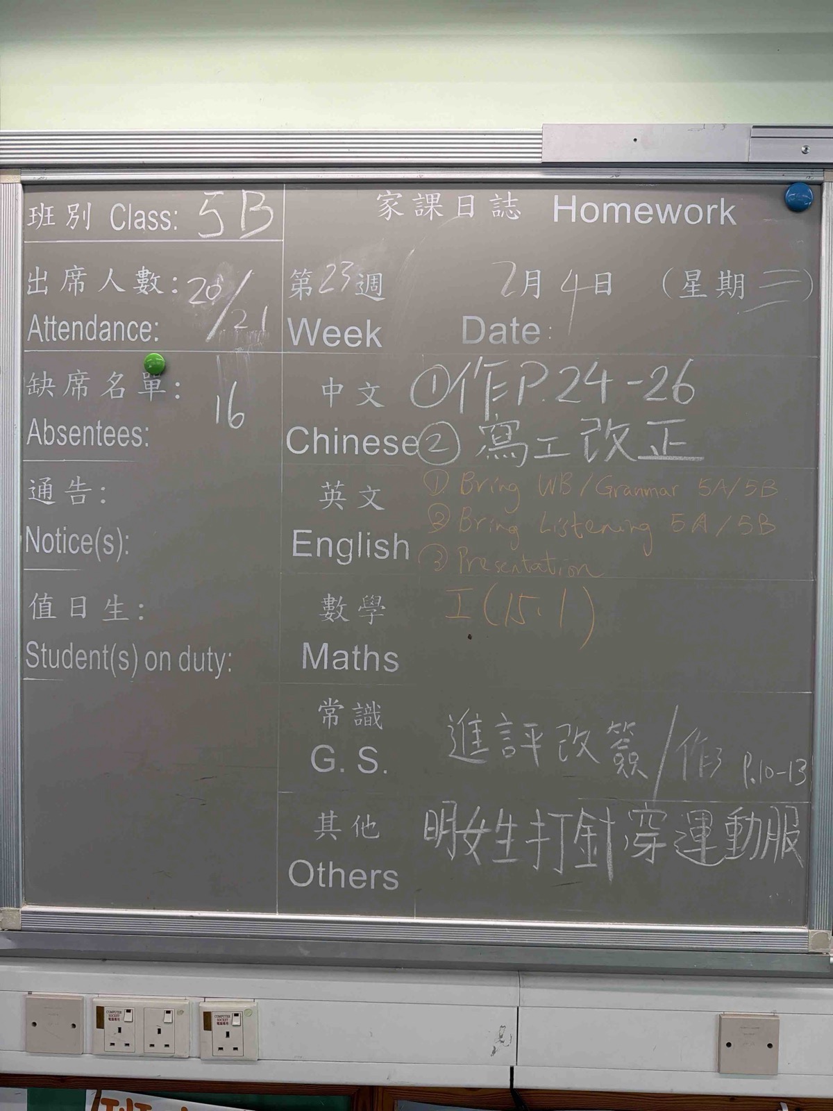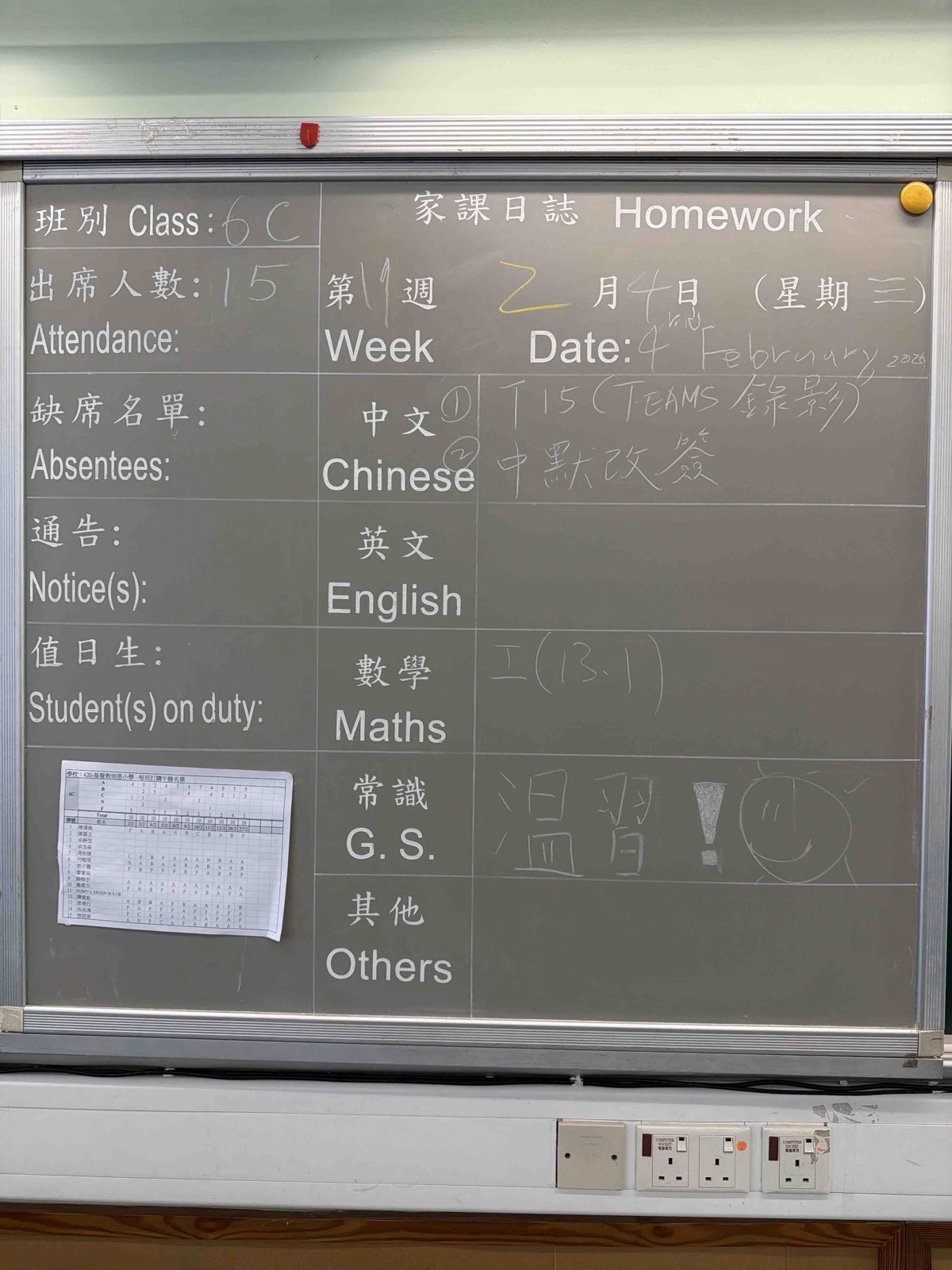 班別家課