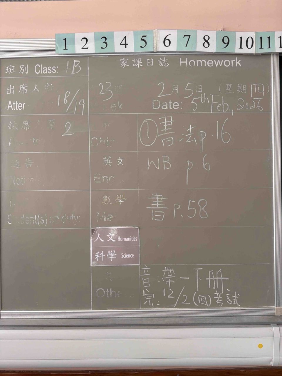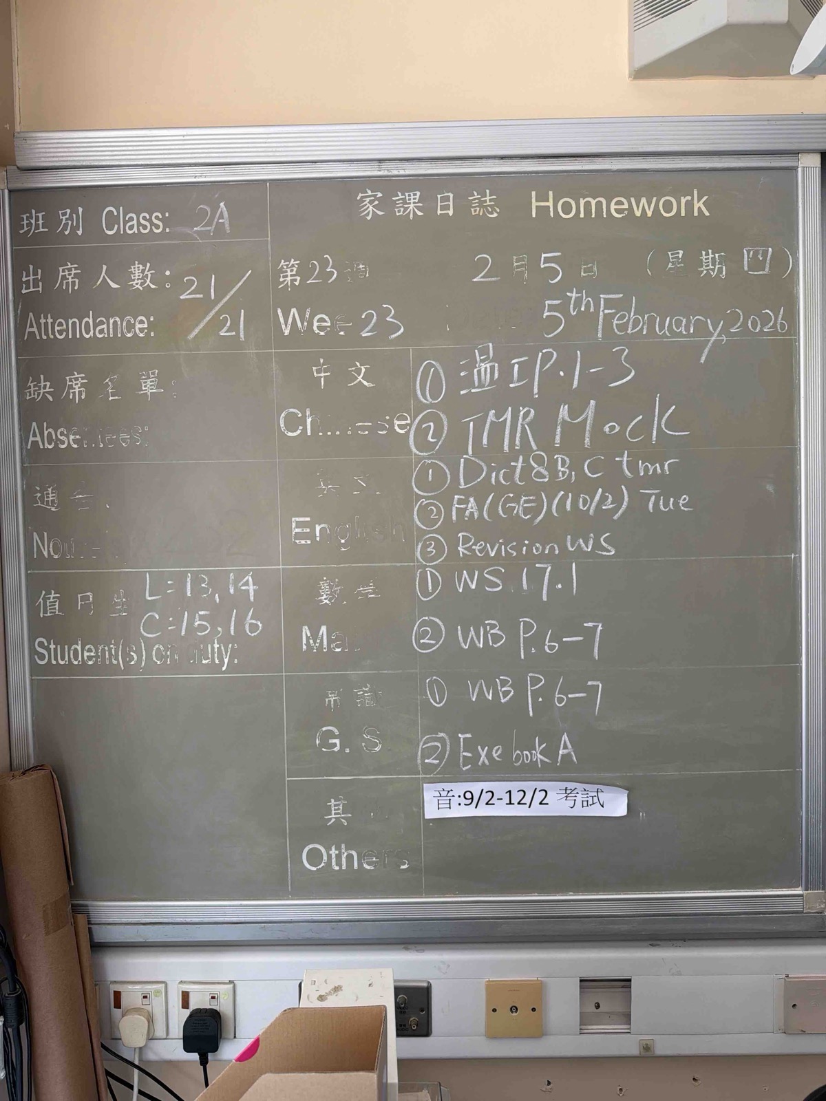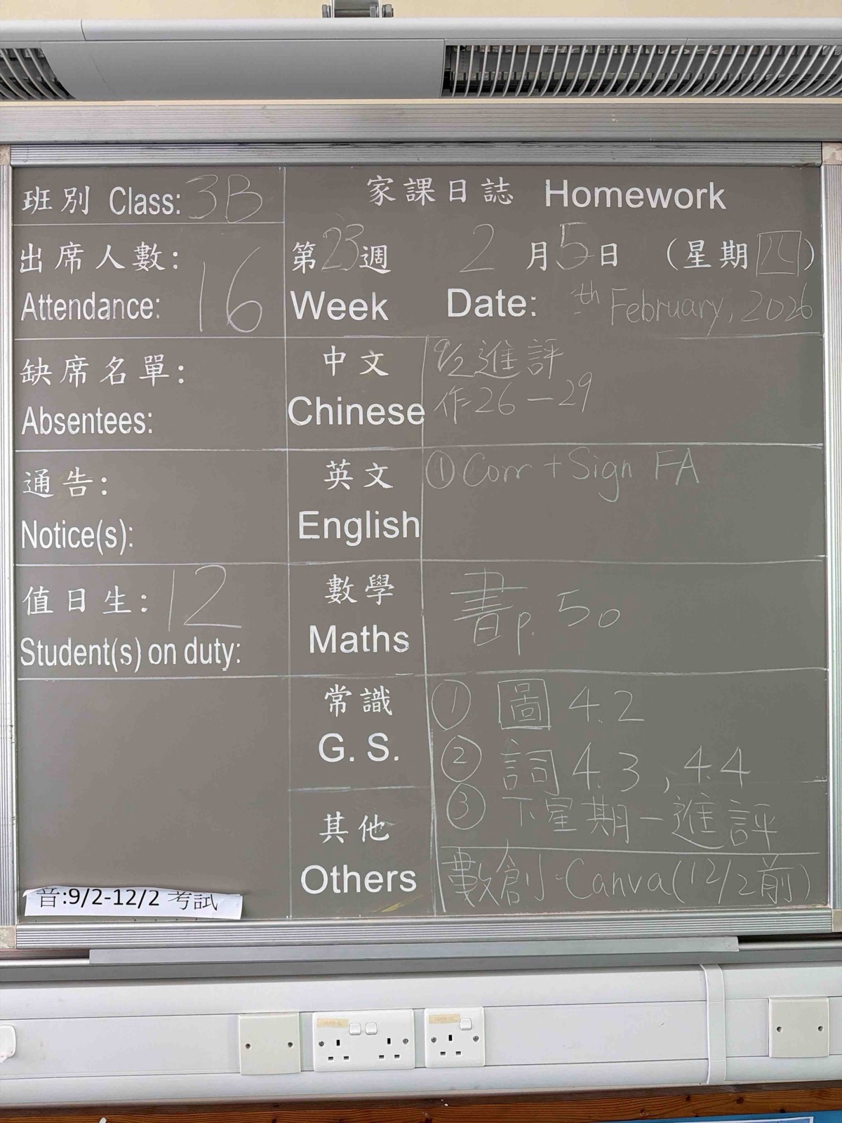 班別家課