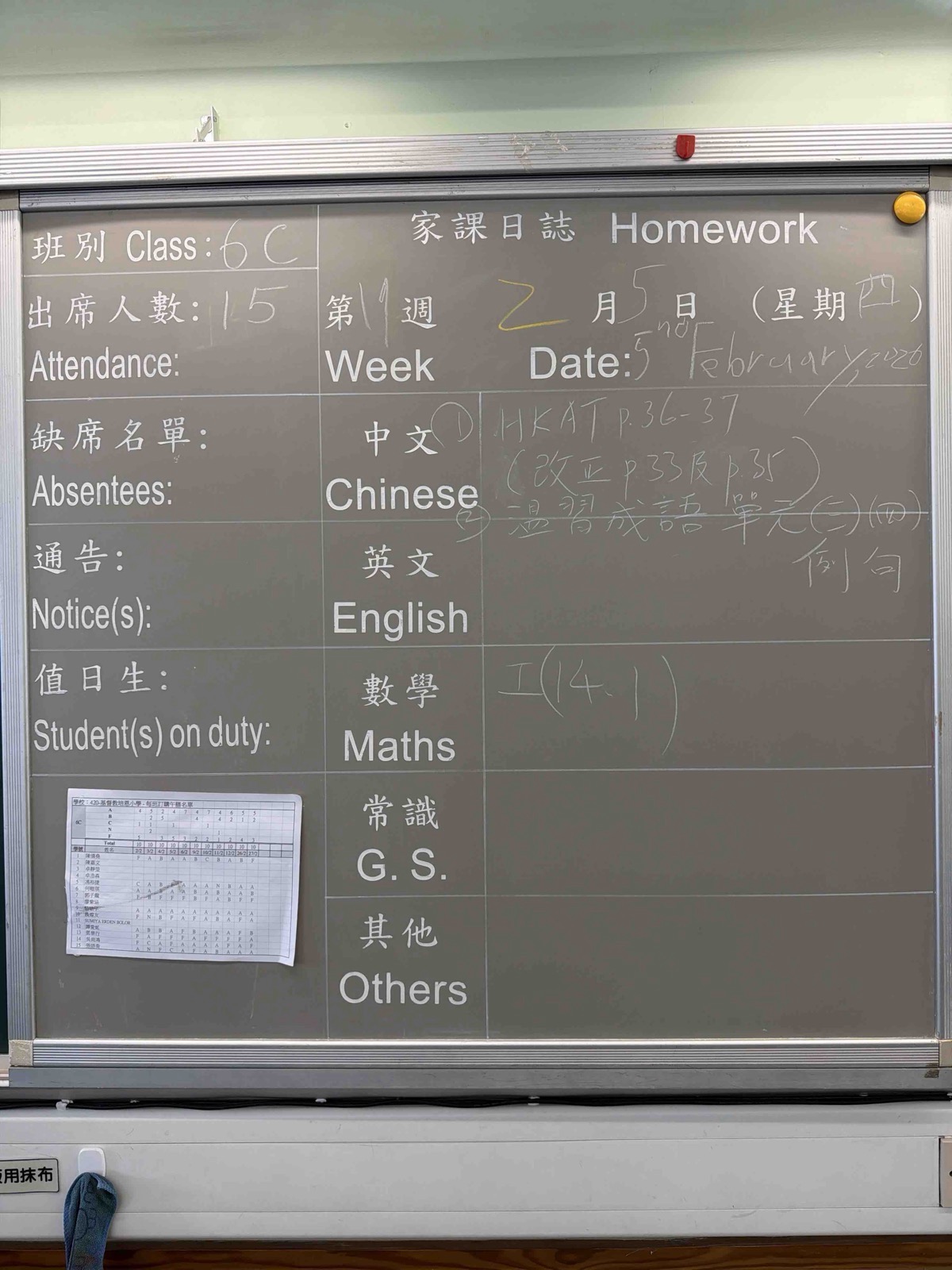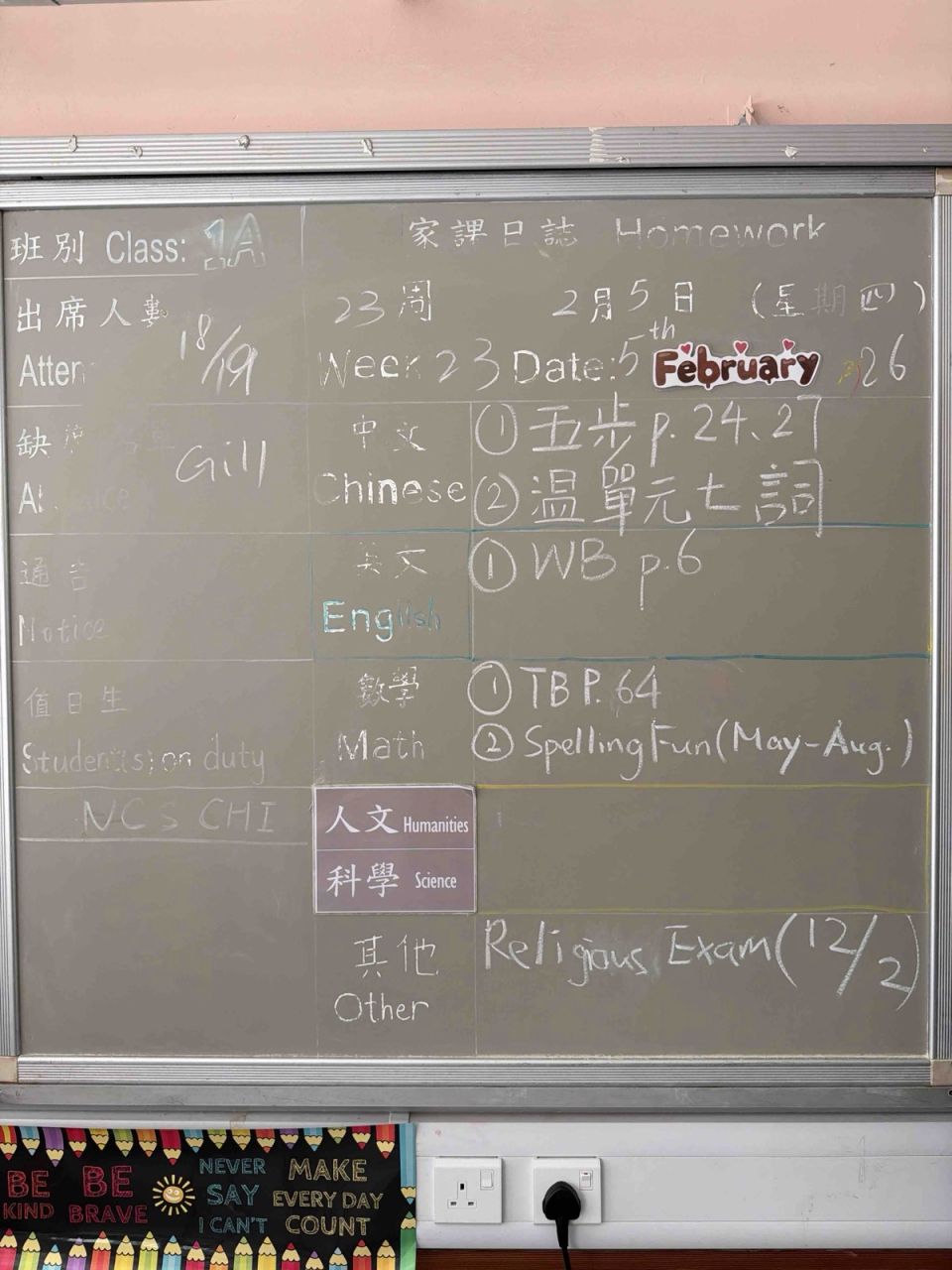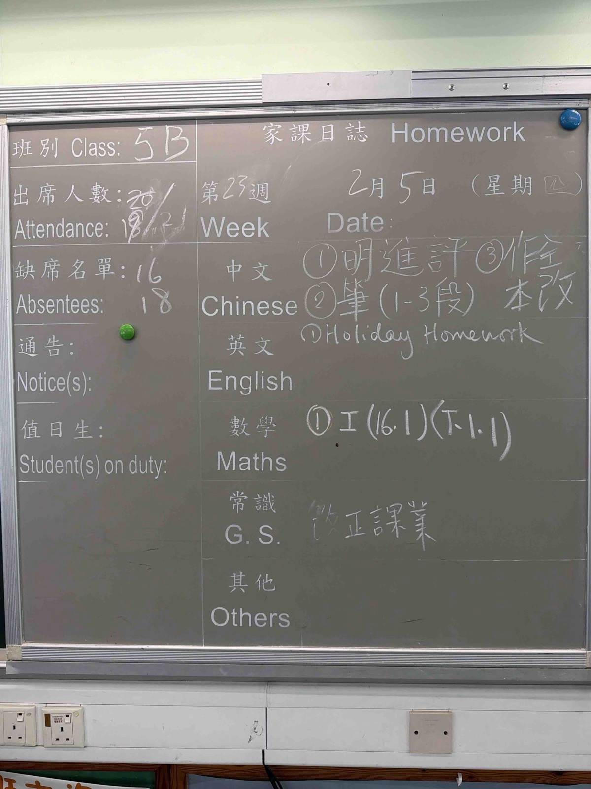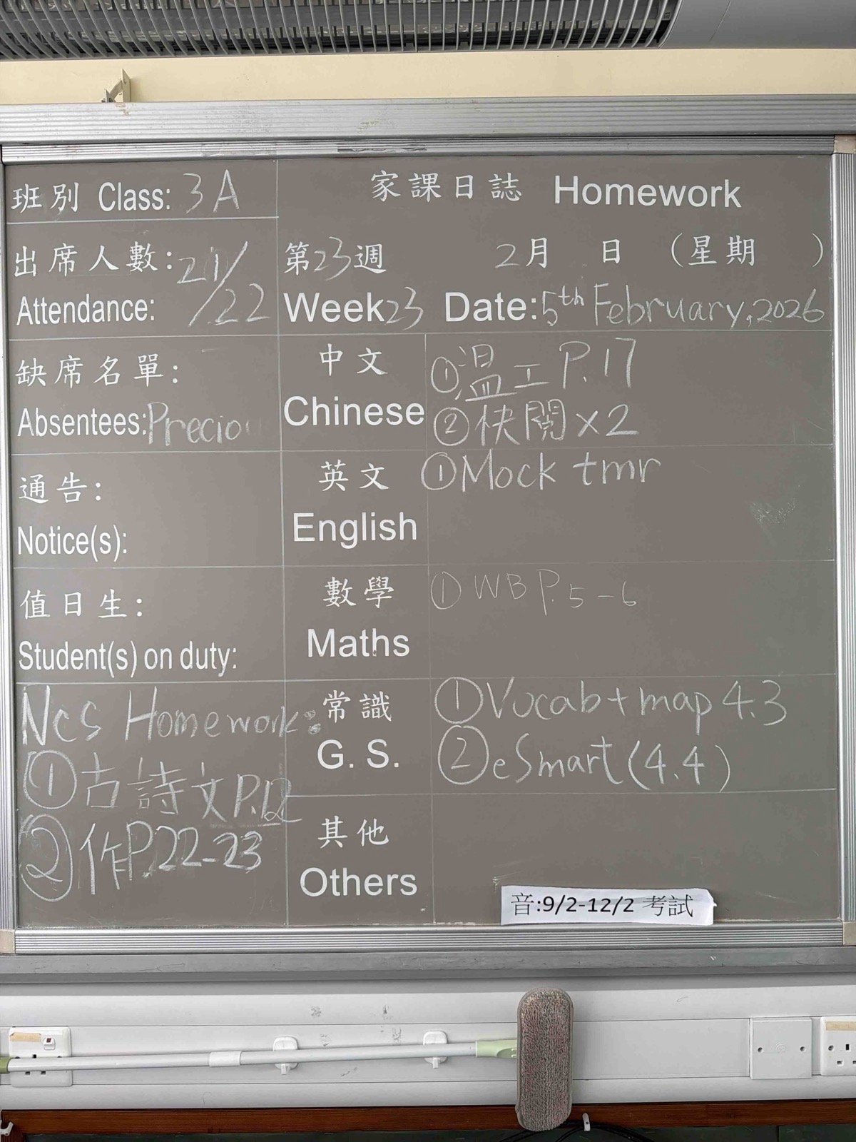 班別家課