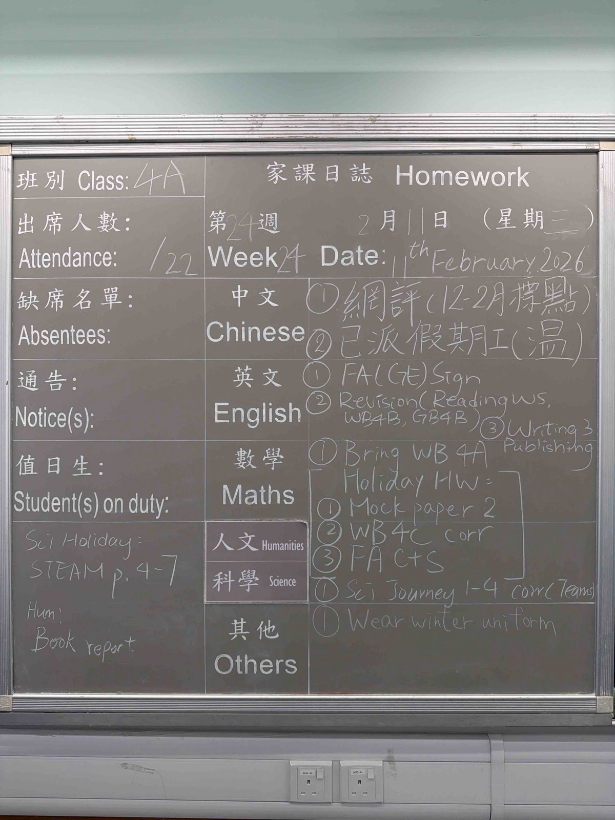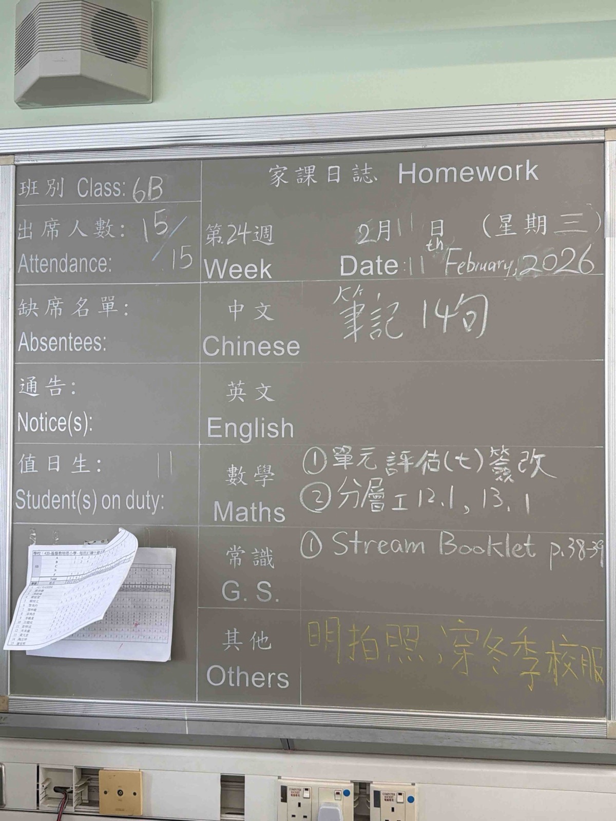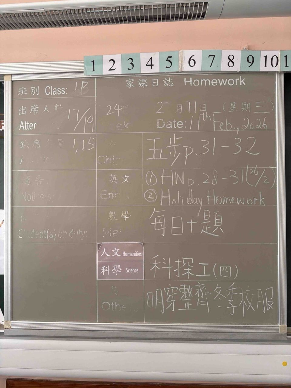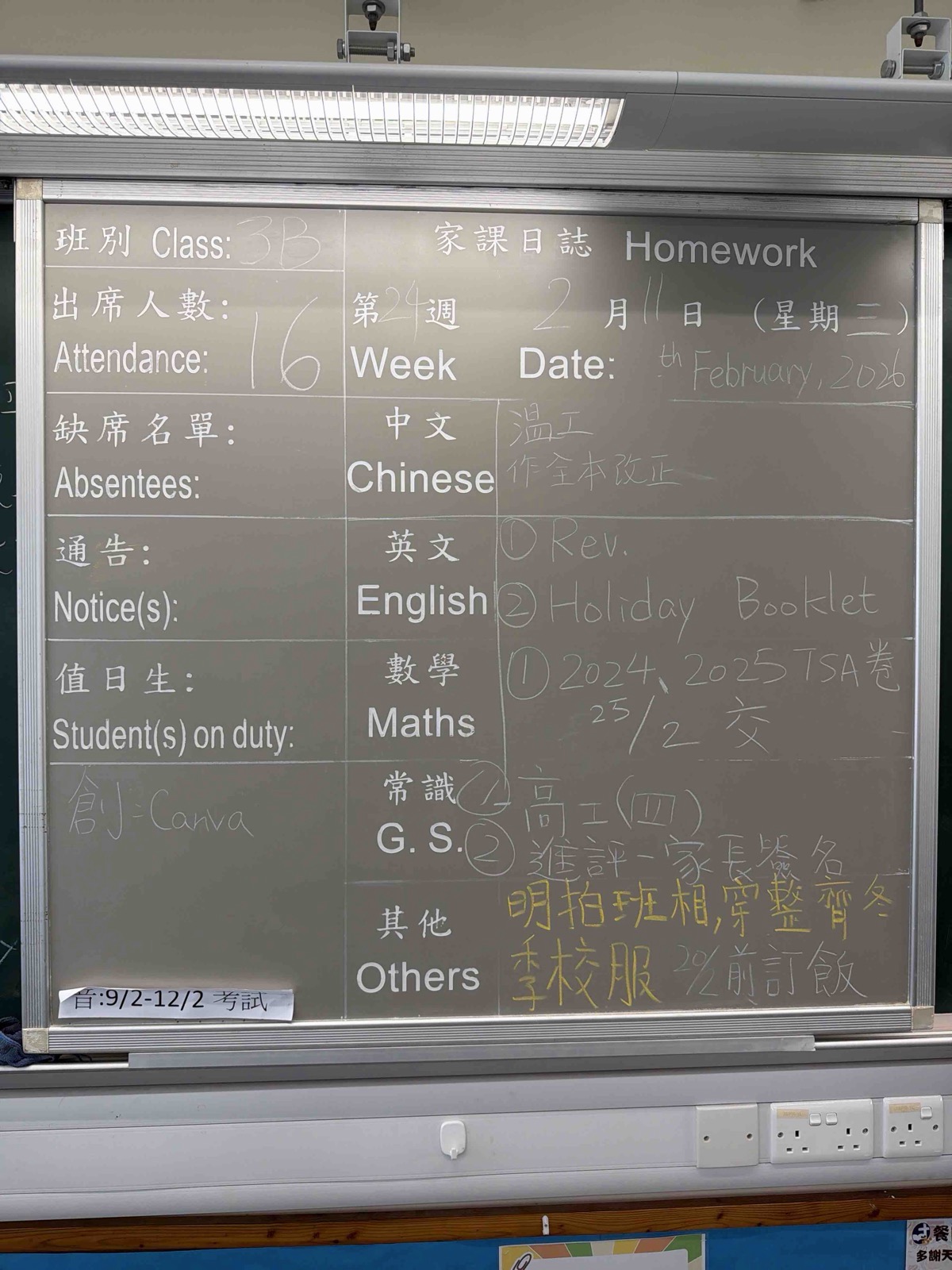班別家課