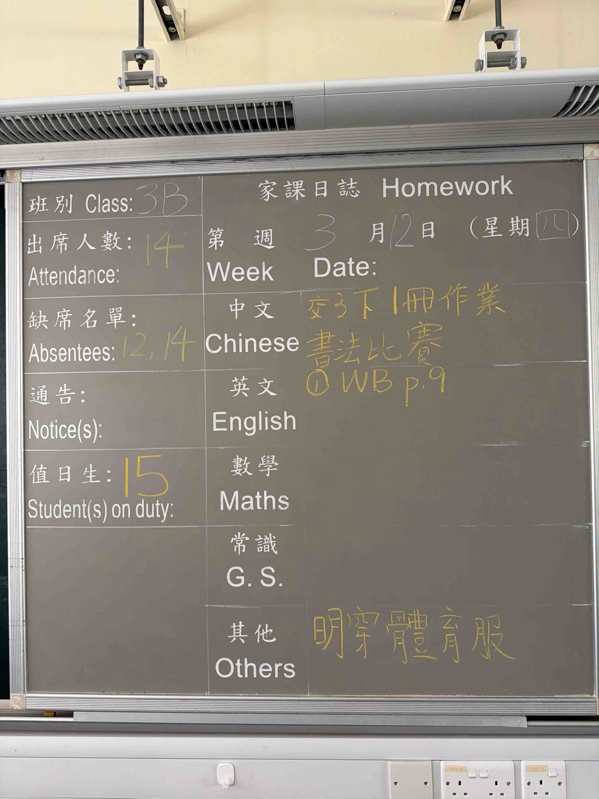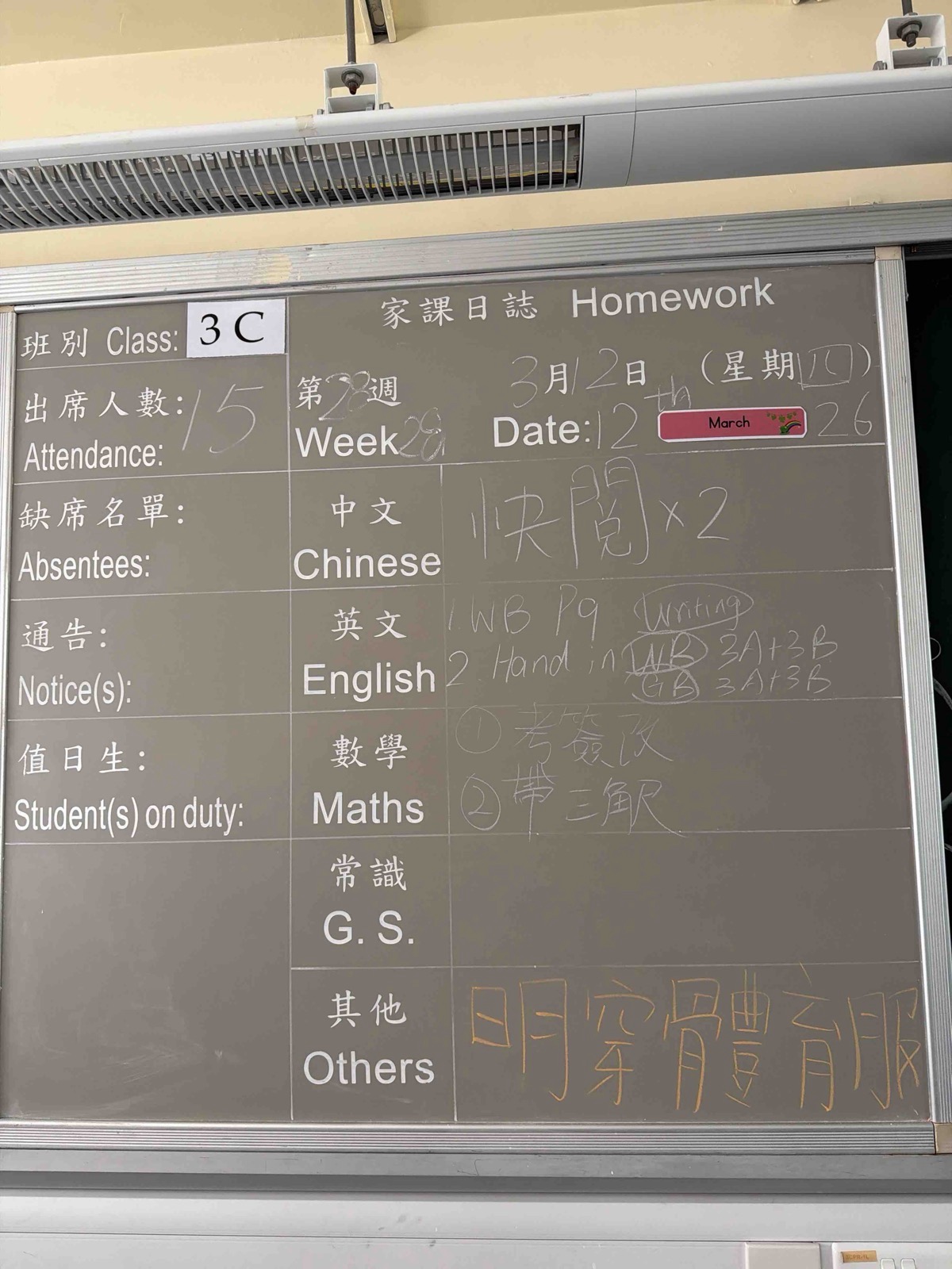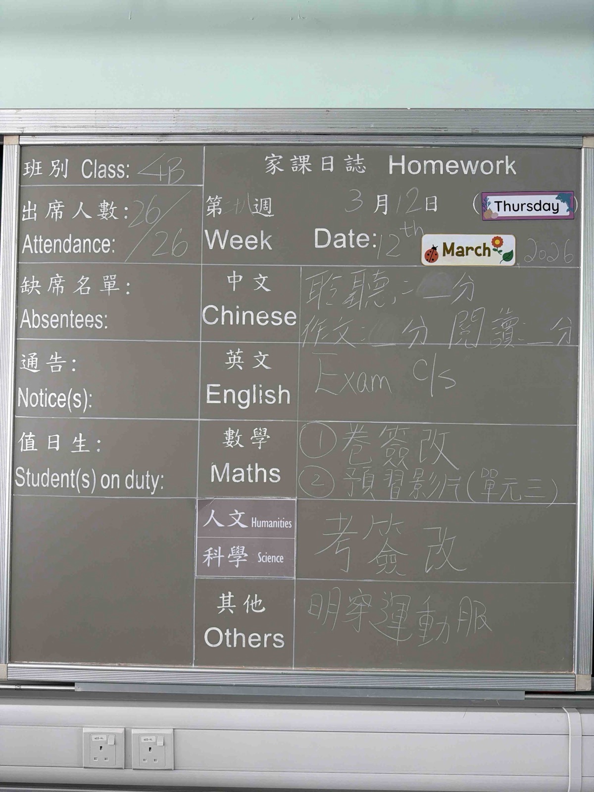 班別家課
