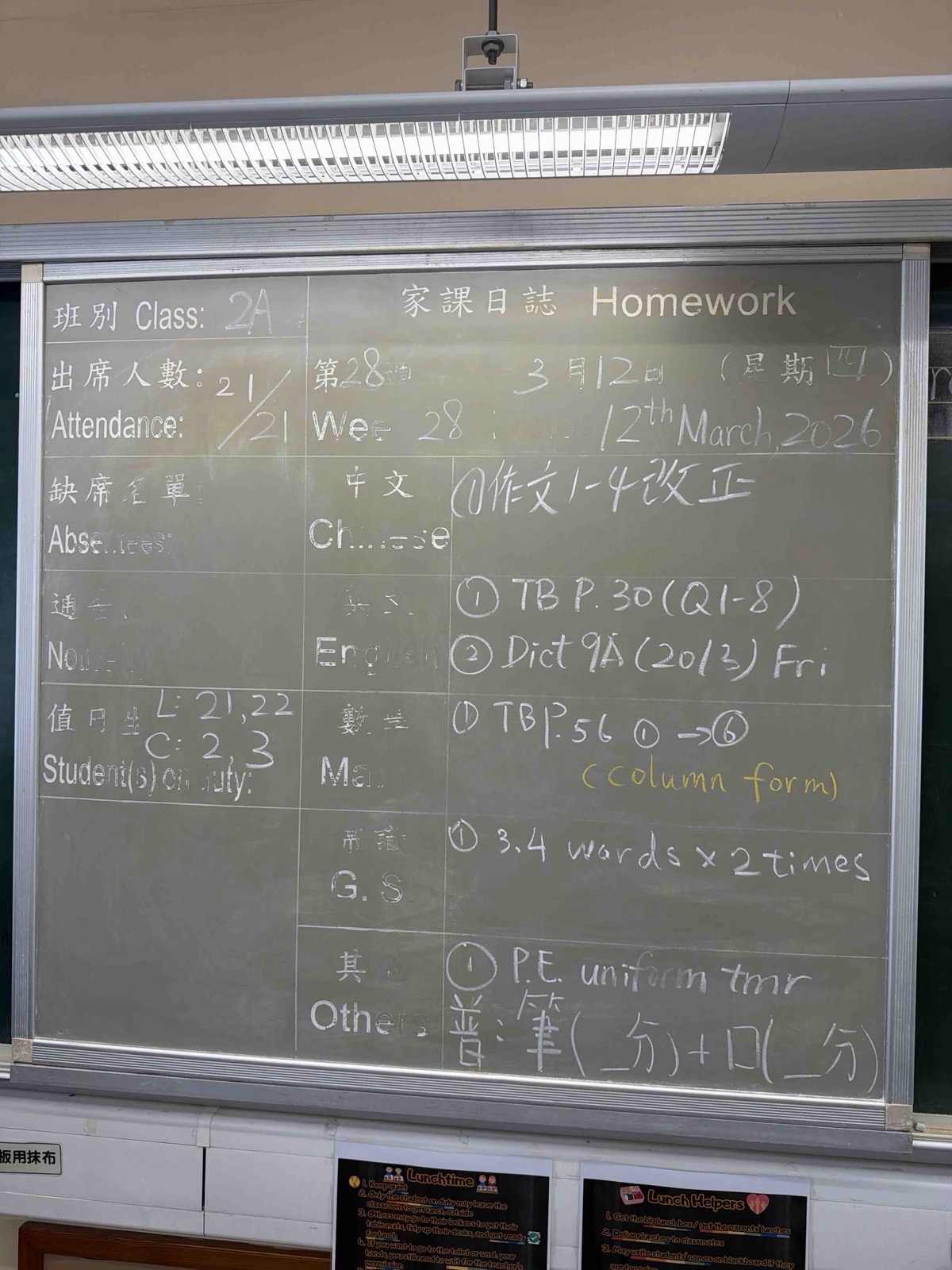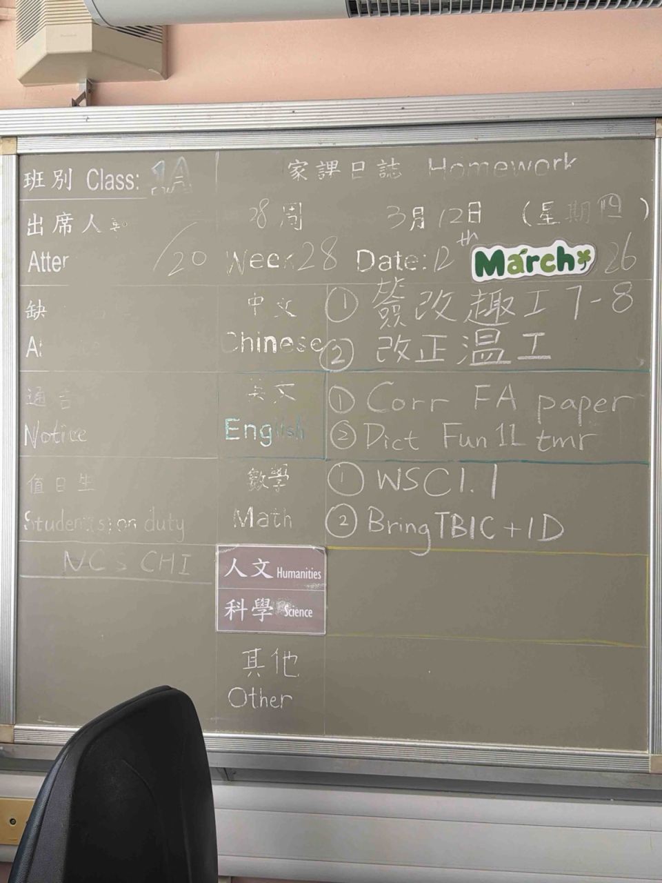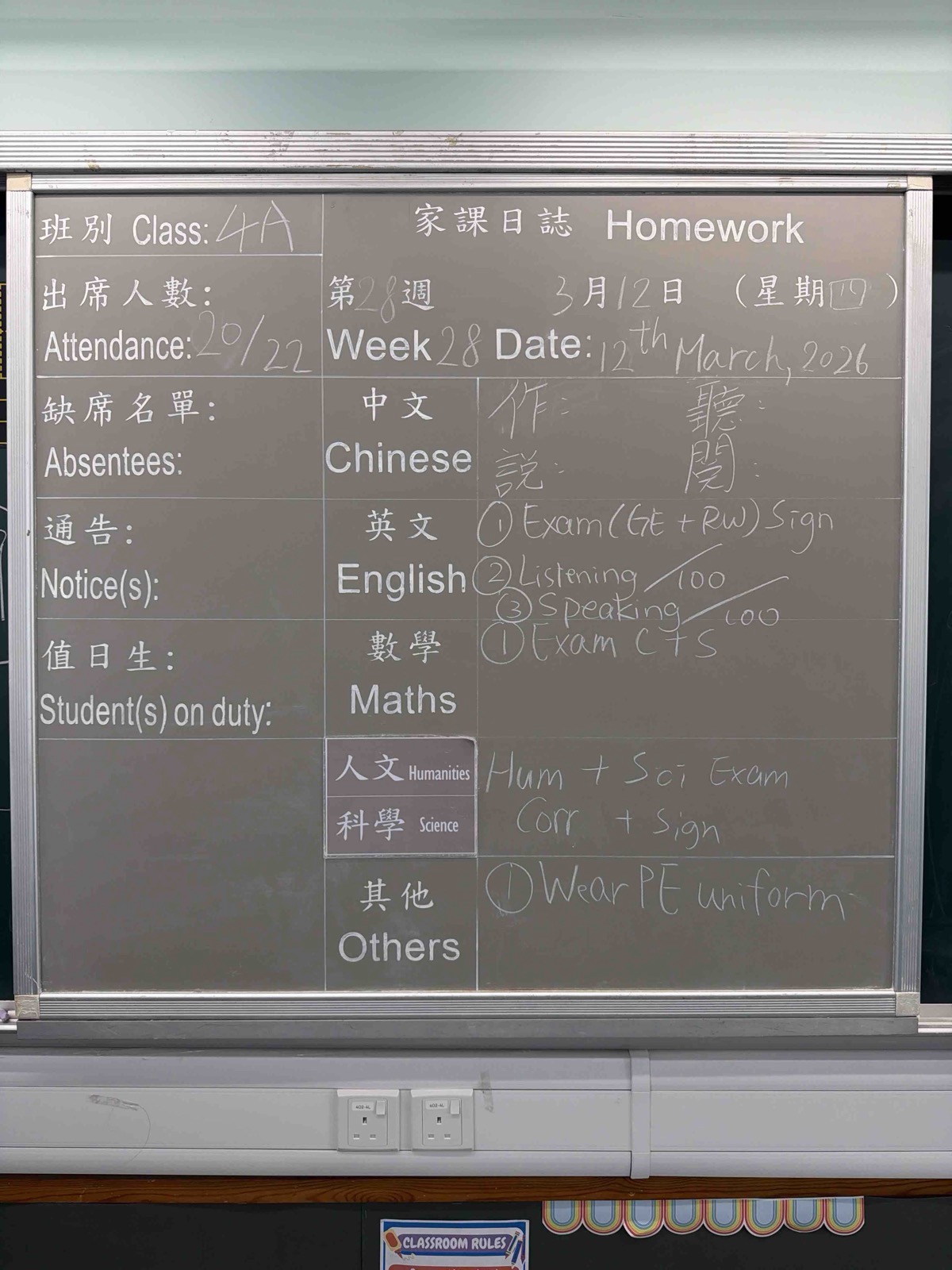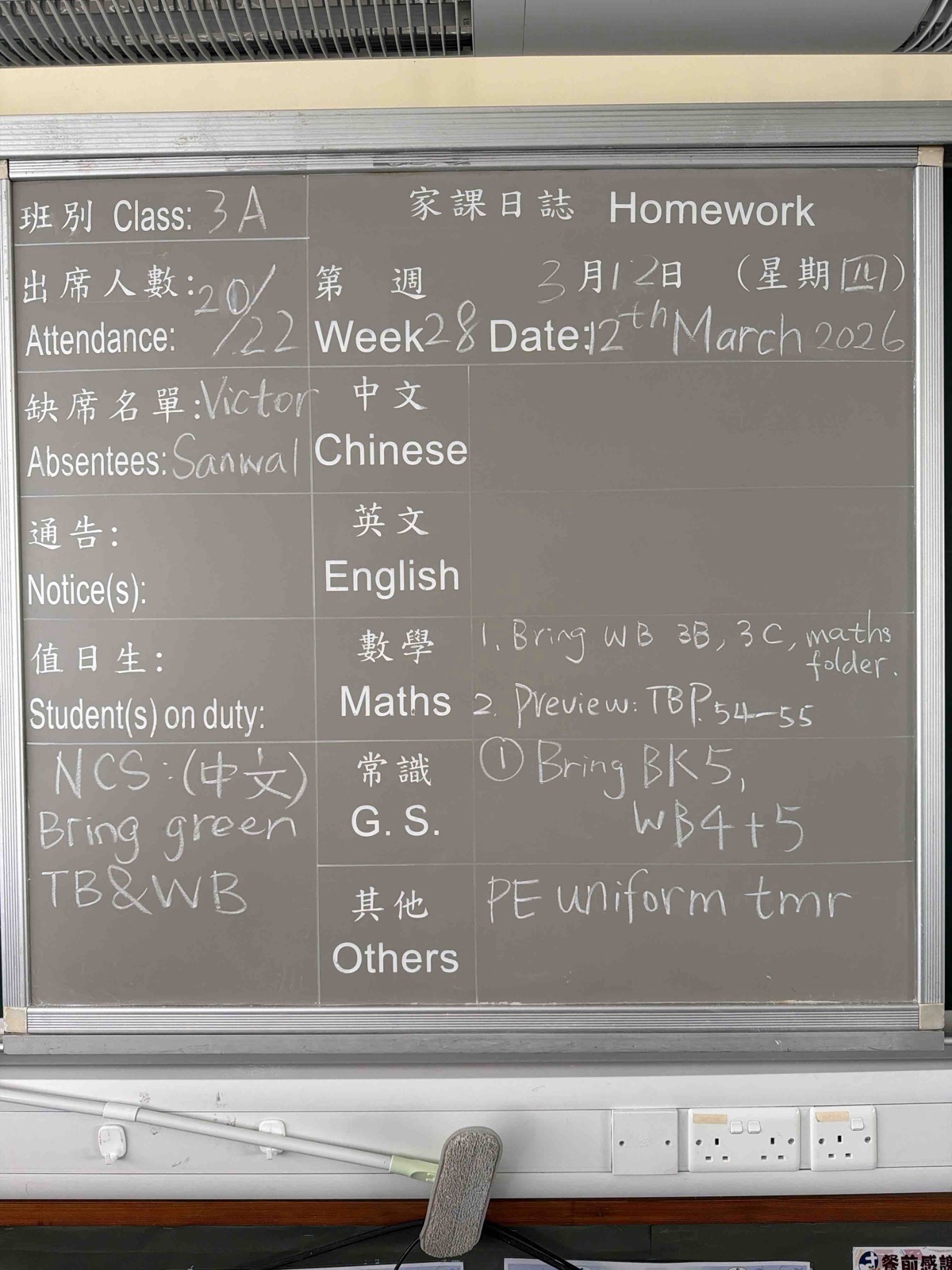 班別家課