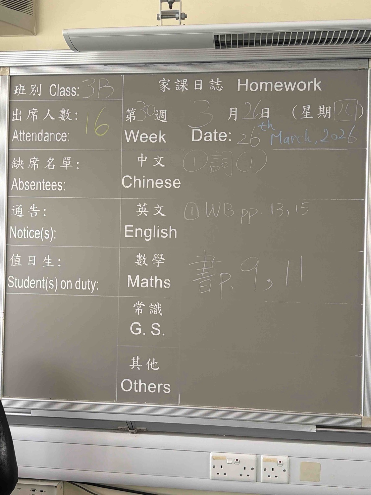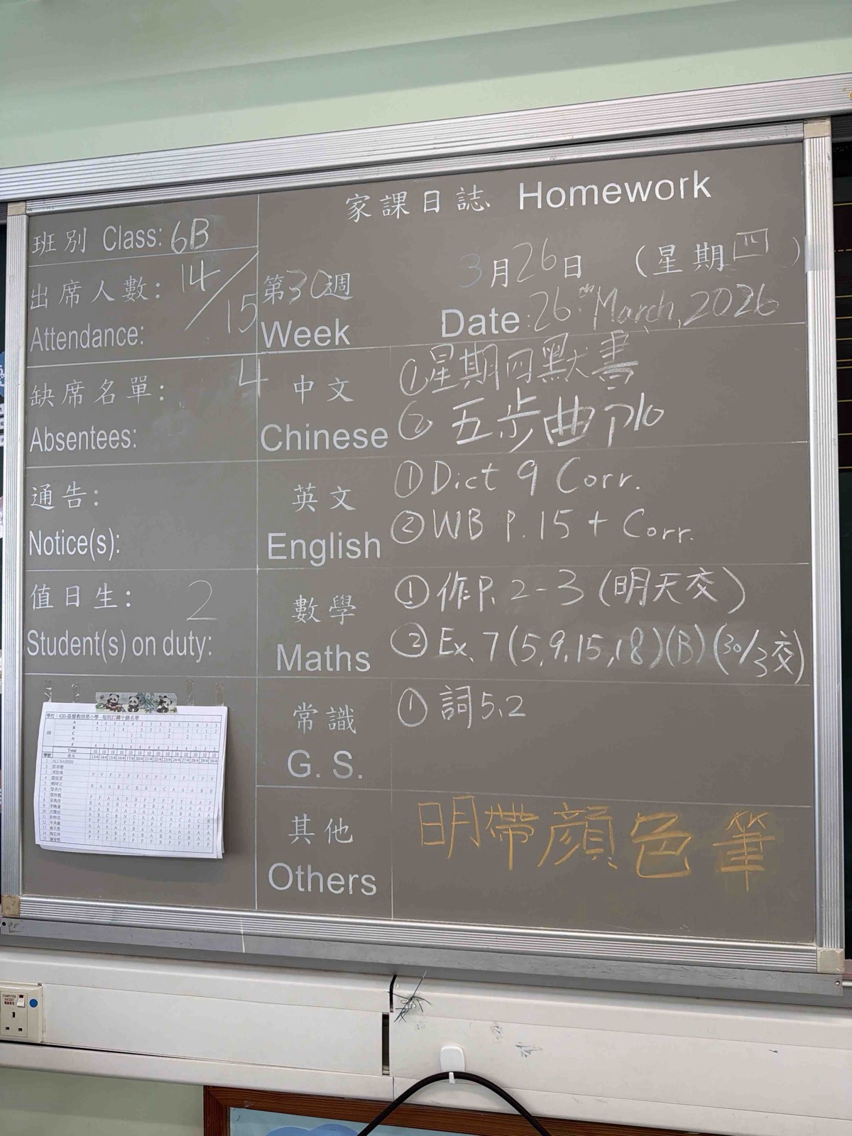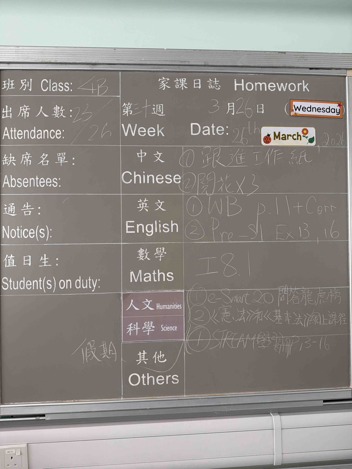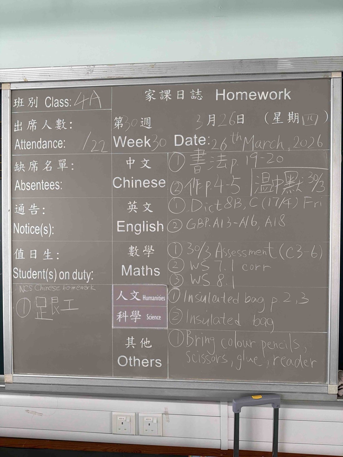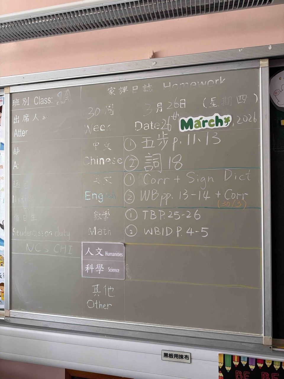 班別家課