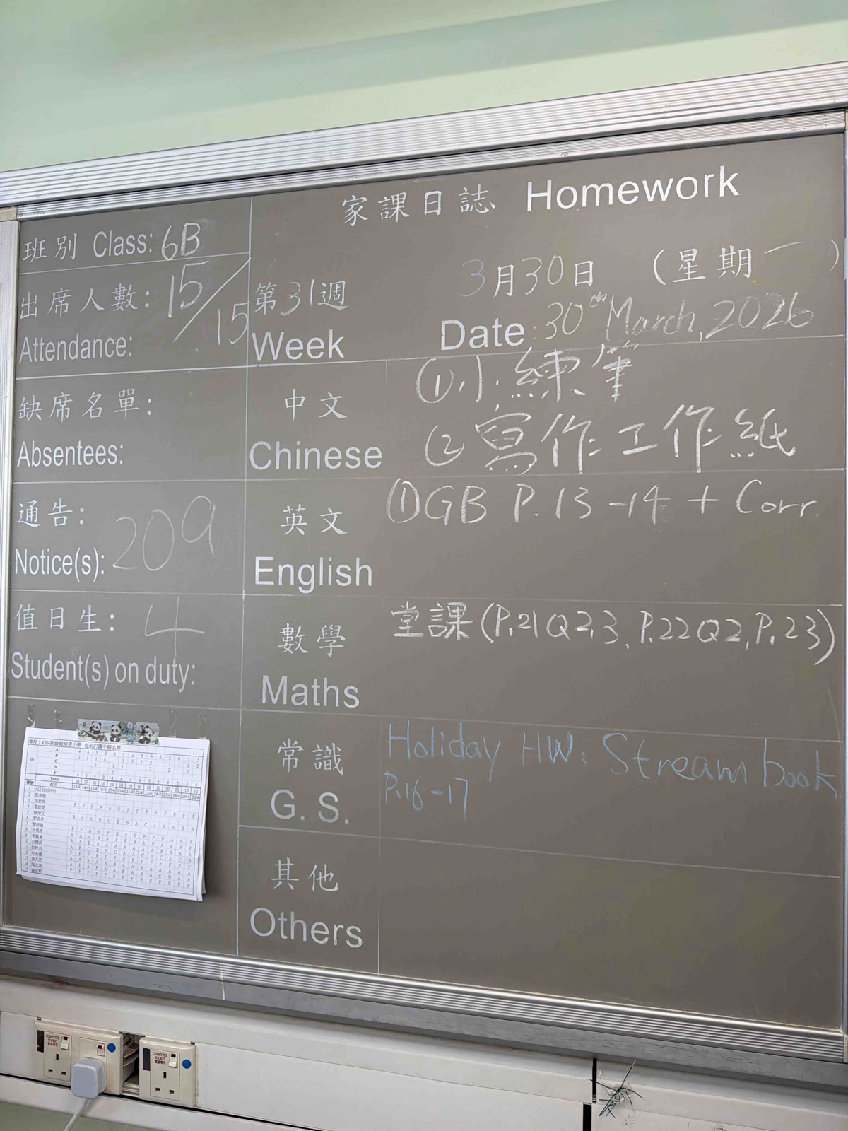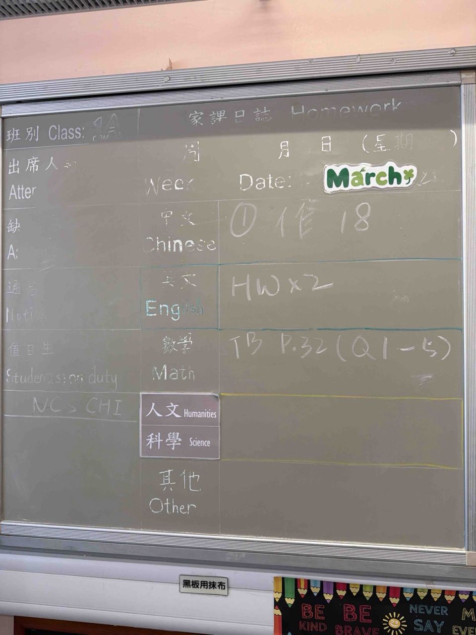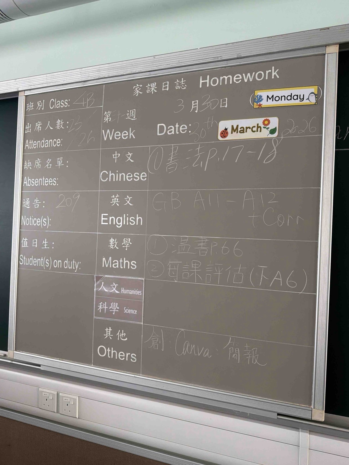 班別家課