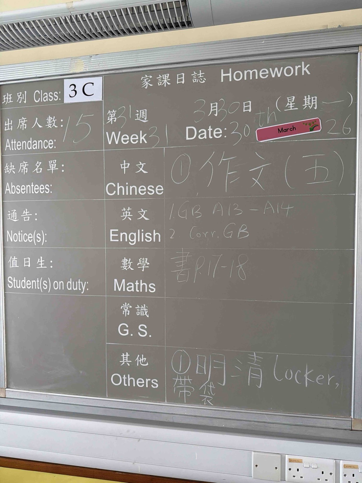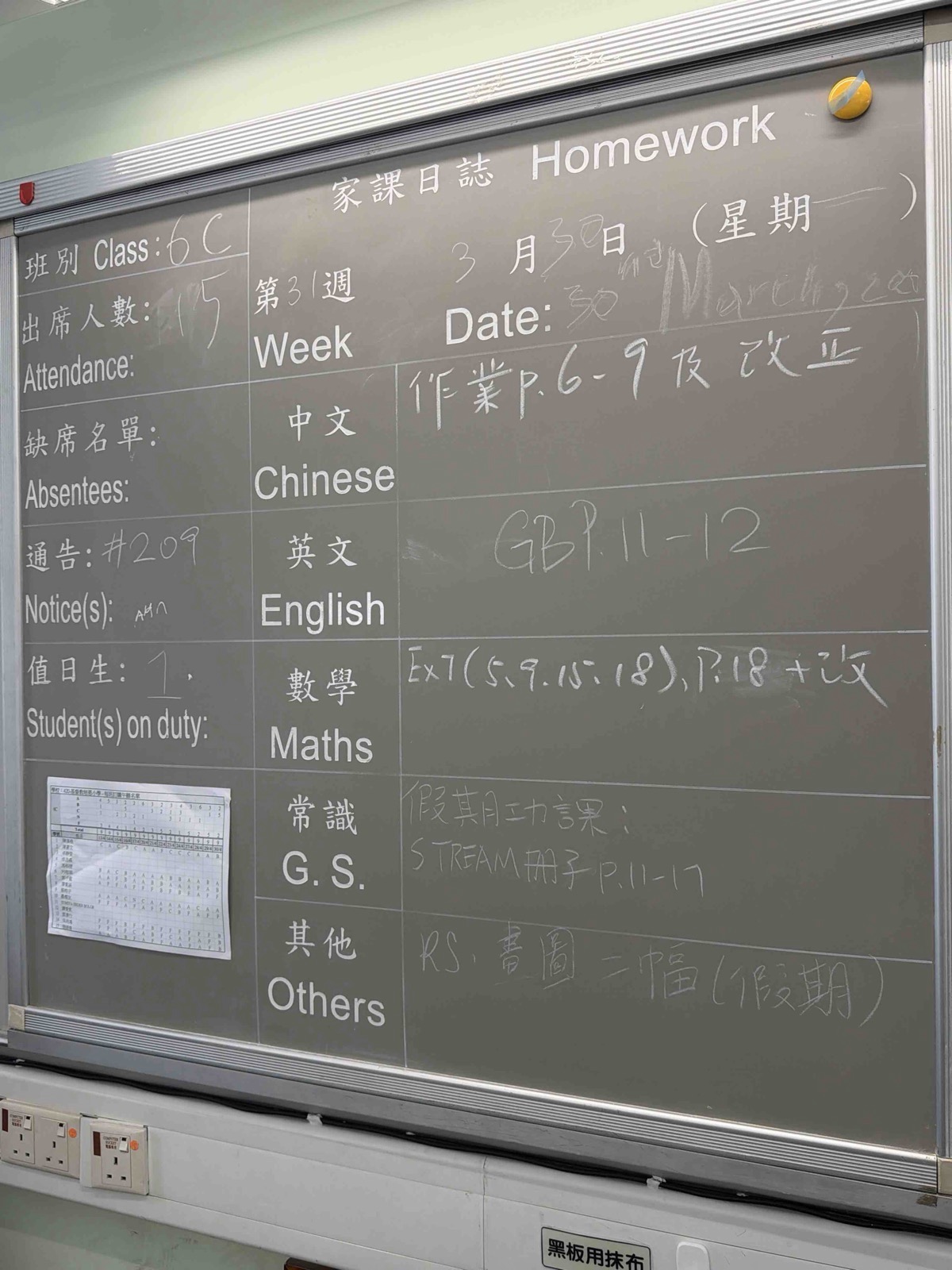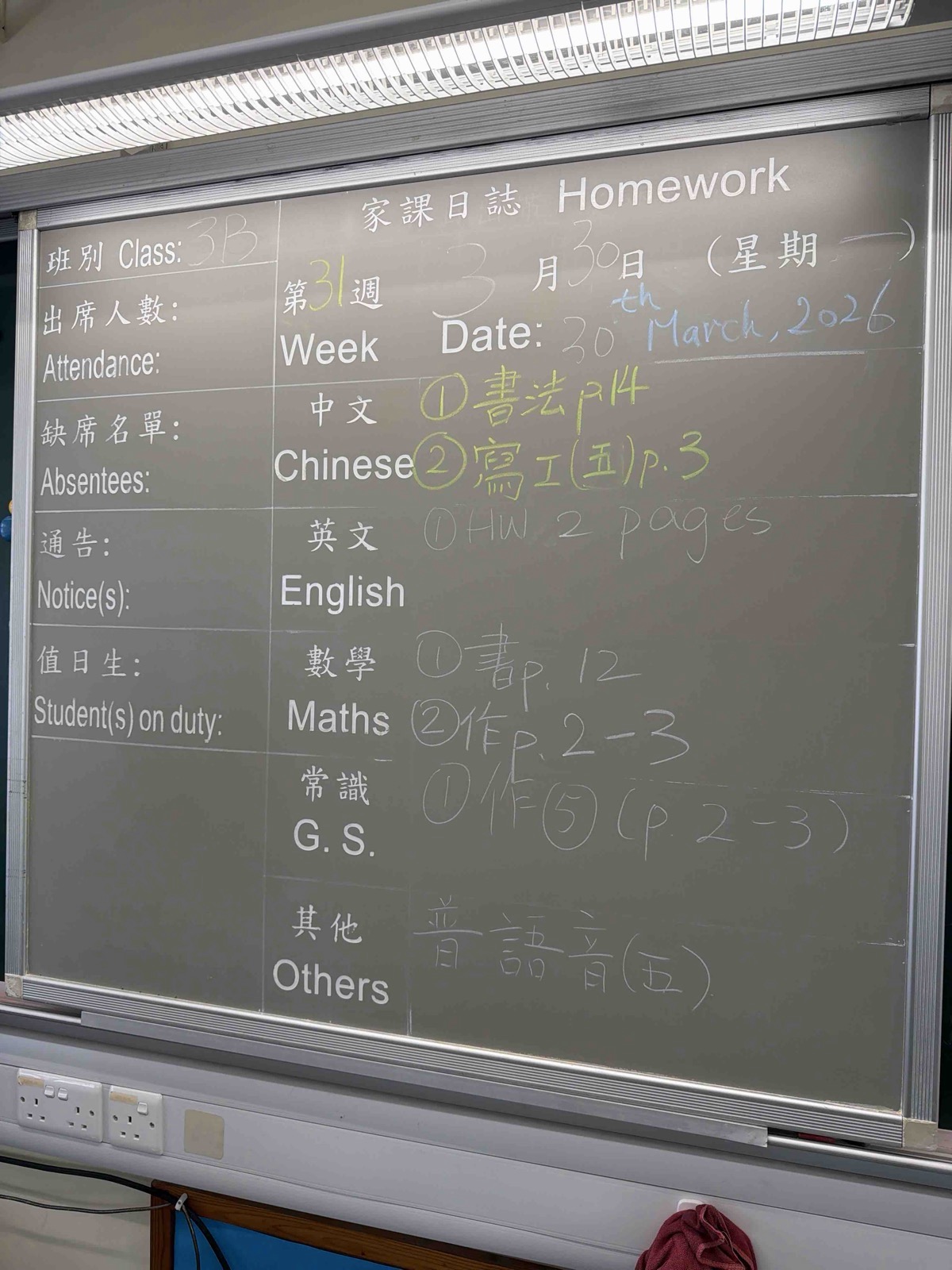 班別家課